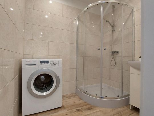 W łazience pralka automatyczna