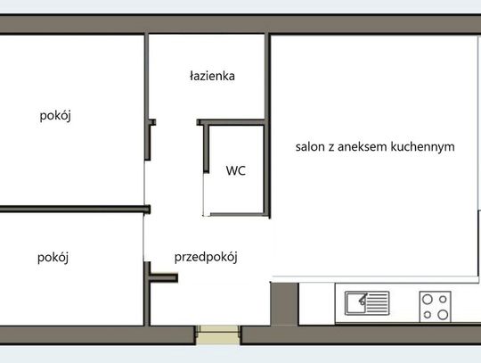 Mieszkanie jest dwustronne z niezależnym wejściem do wszystkich pomieszczeń