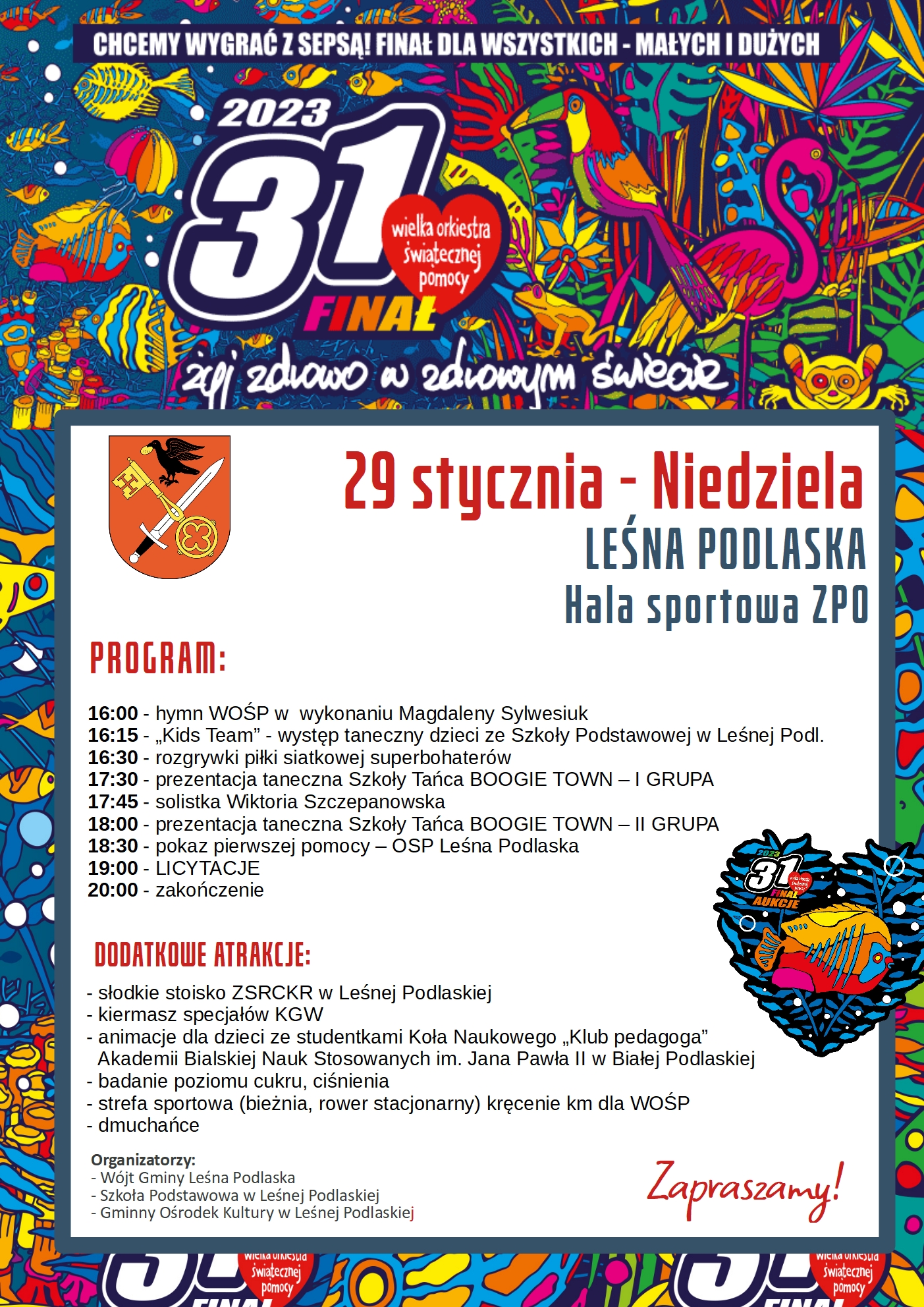 31. Finał Wielkiej Orkiestry Świątecznej Pomocy zaczyna się w Leśnej Podlaskiej o godz. 16 w niedzielę na hali sportowej Zespole Placówek Oświatowych.