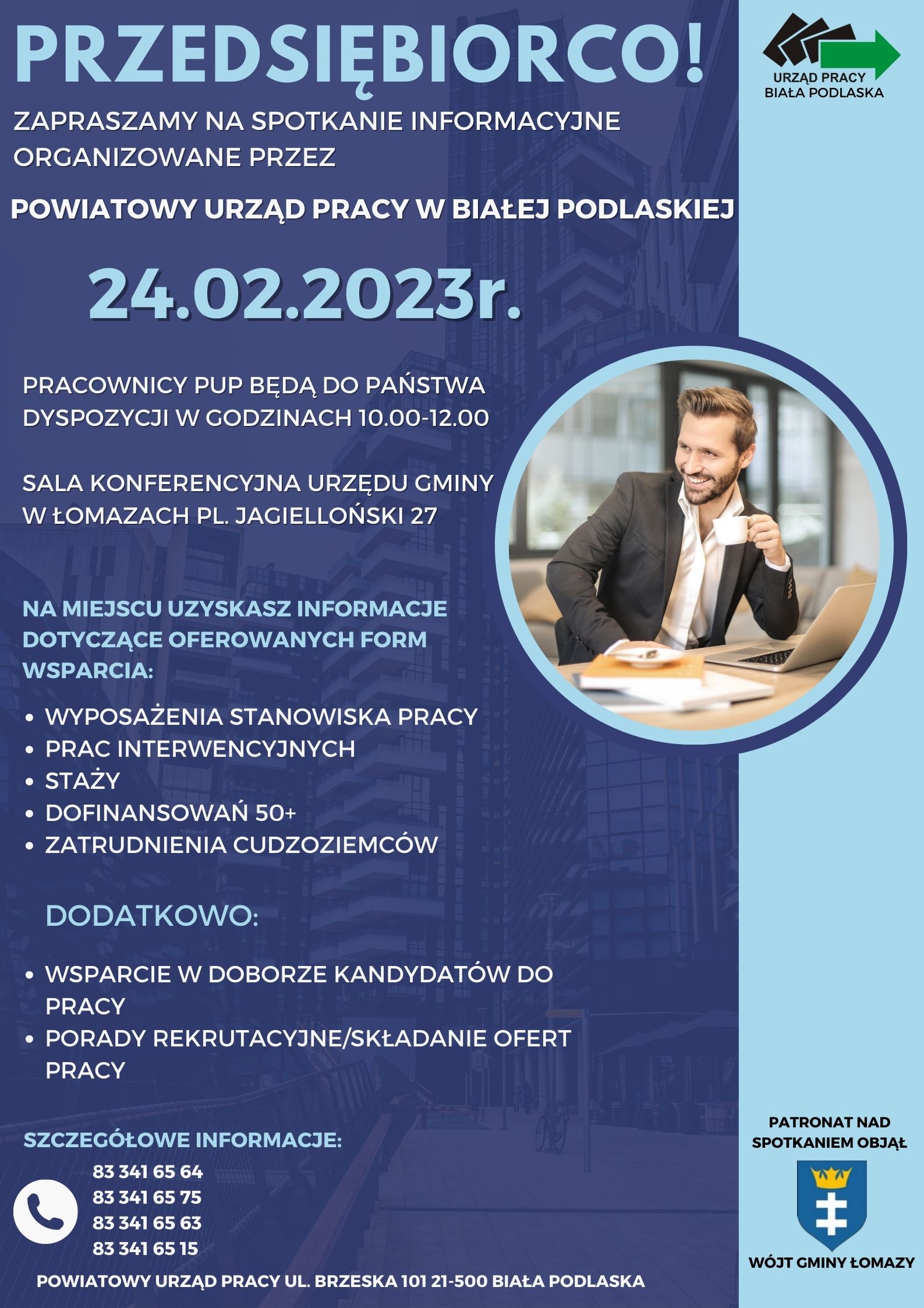 Przedsiębiorcy dowiedzą się m.in.: o dofinansowaniu na wyposażenie stanowiska pracy, pracach interwencyjnych, stażach, dofinansowaniu 50+ oraz zatrudnieniu cudzoziemców.