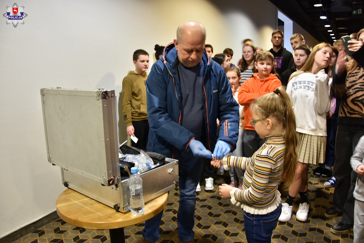- Na spotkaniach przedstawione zostały również niektóre sposoby ujawniania i zabezpieczania śladów biologicznych, mechanoskopijnych i traseologicznych. Na zakończenie każdego ze spotkań dzieci otrzymały elementy odblaskowe przygotowane przez WORD w Białej Podlaskiej oraz słodkie upominki przygotowane przez firmę Bakalland S.A. z Janowa Podlaskiego – dodaje rzecznik prasowy Komendy Miejskiej Policji w Białej Podlaskiej Barbara Salczyńska-Pyrchla.