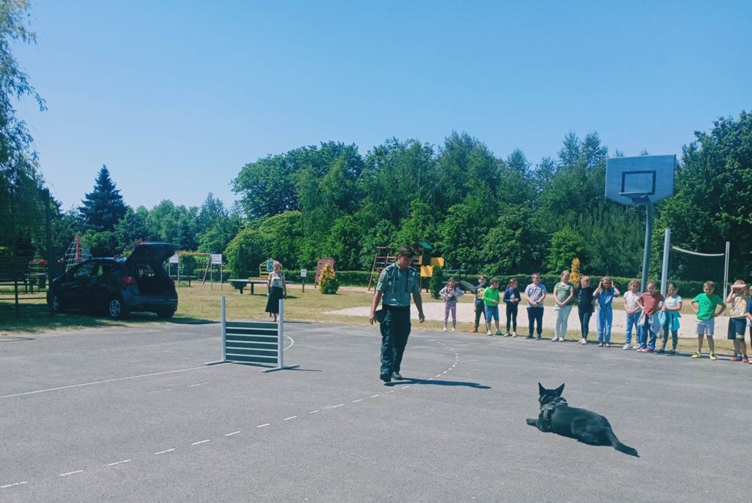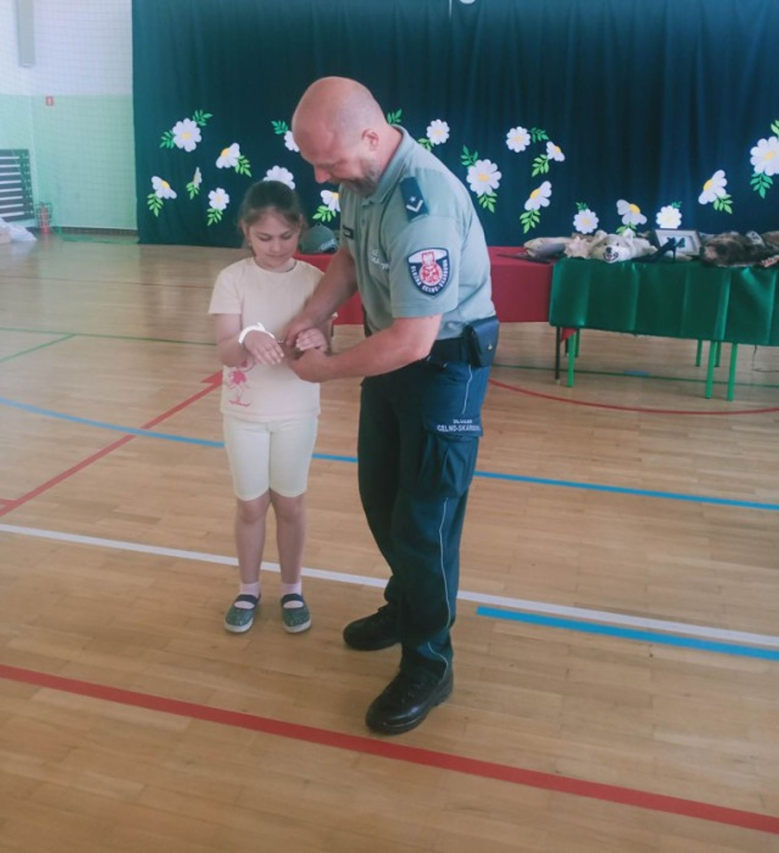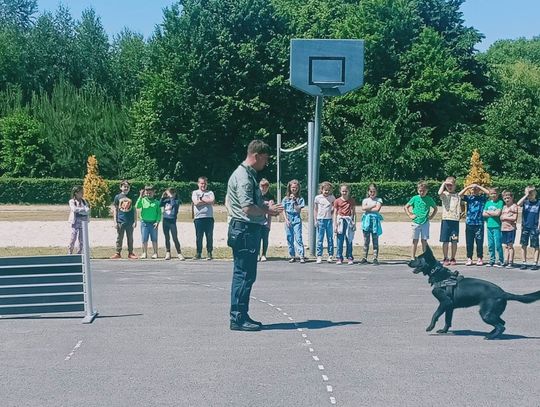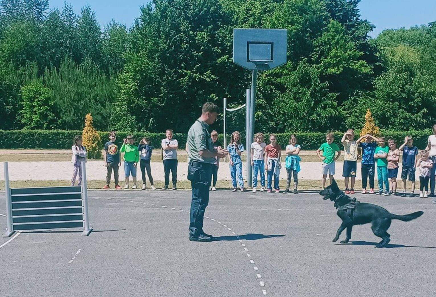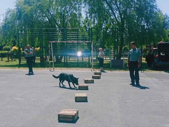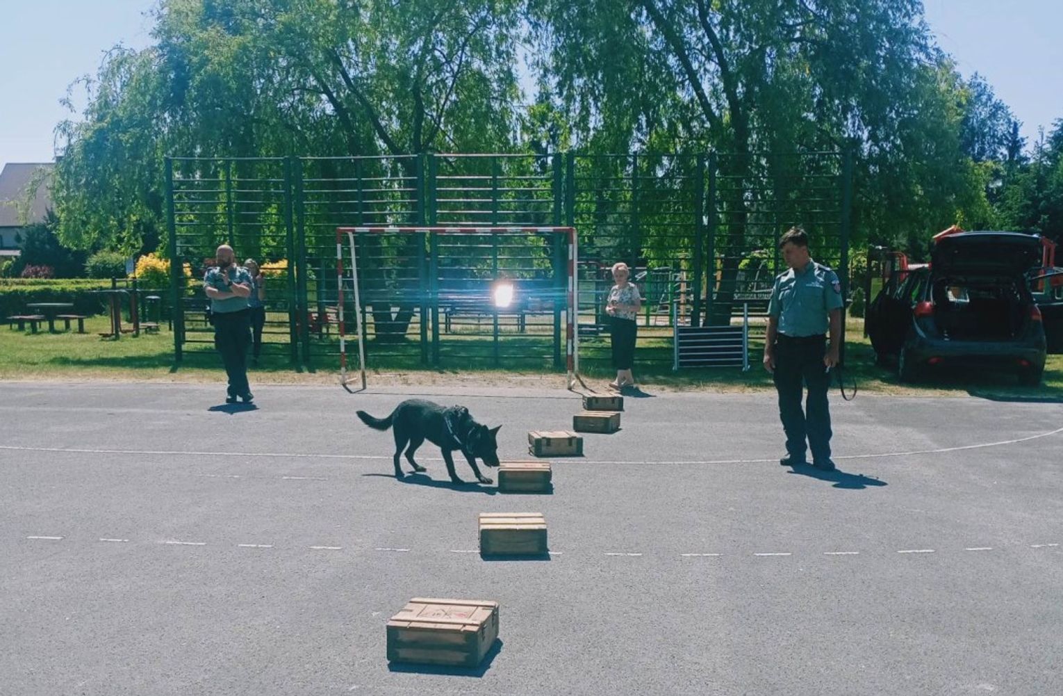 W trakcie spotkania uczniowie mieli okazję przymierzyć umundurowanie polowe i specjalne, używane przez funkcjonariuszy podczas prowadzonych akcji. Kolejnym punktem tego wydarzenia była prezentacja psa tropiącego o imieniu Cleo. Na boisku szkolnym Cleo w towarzystwie swojego opiekuna pokazał umiejętności, które wykorzystuje w swojej codziennej pracy – bezwzględne posłuszeństwo wobec opiekuna, odporność na obecność tłumu i hałas, tropienie ludzi oraz wykrywanie substancji/przedmiotów o konkretnym profilu (np. wyroby tytoniowe, środki odurzające).