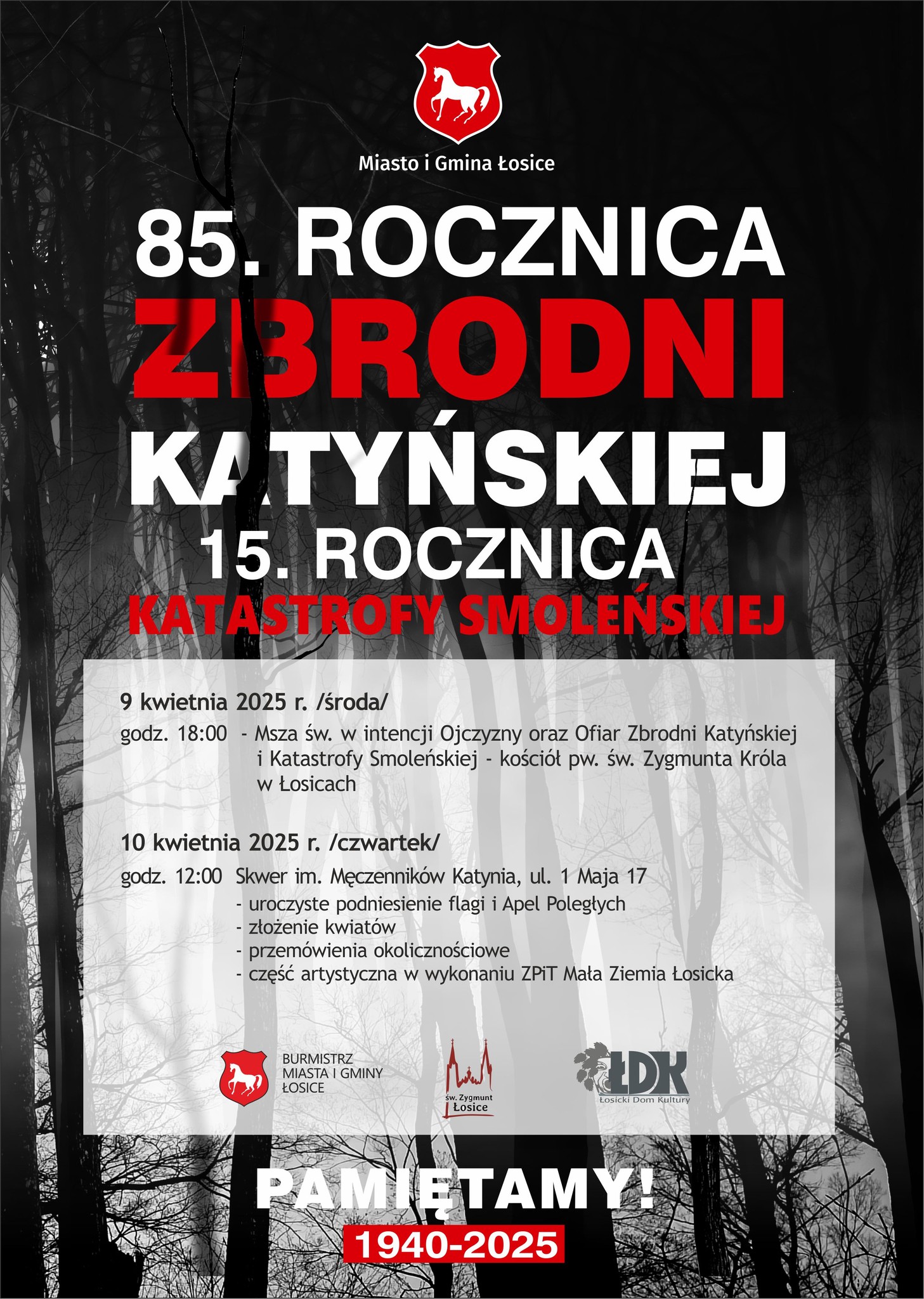 Łosice uczczą 85. rocznicę Zbrodni Katyńskiej oraz 15. Katastrofy Smoleńskiej.