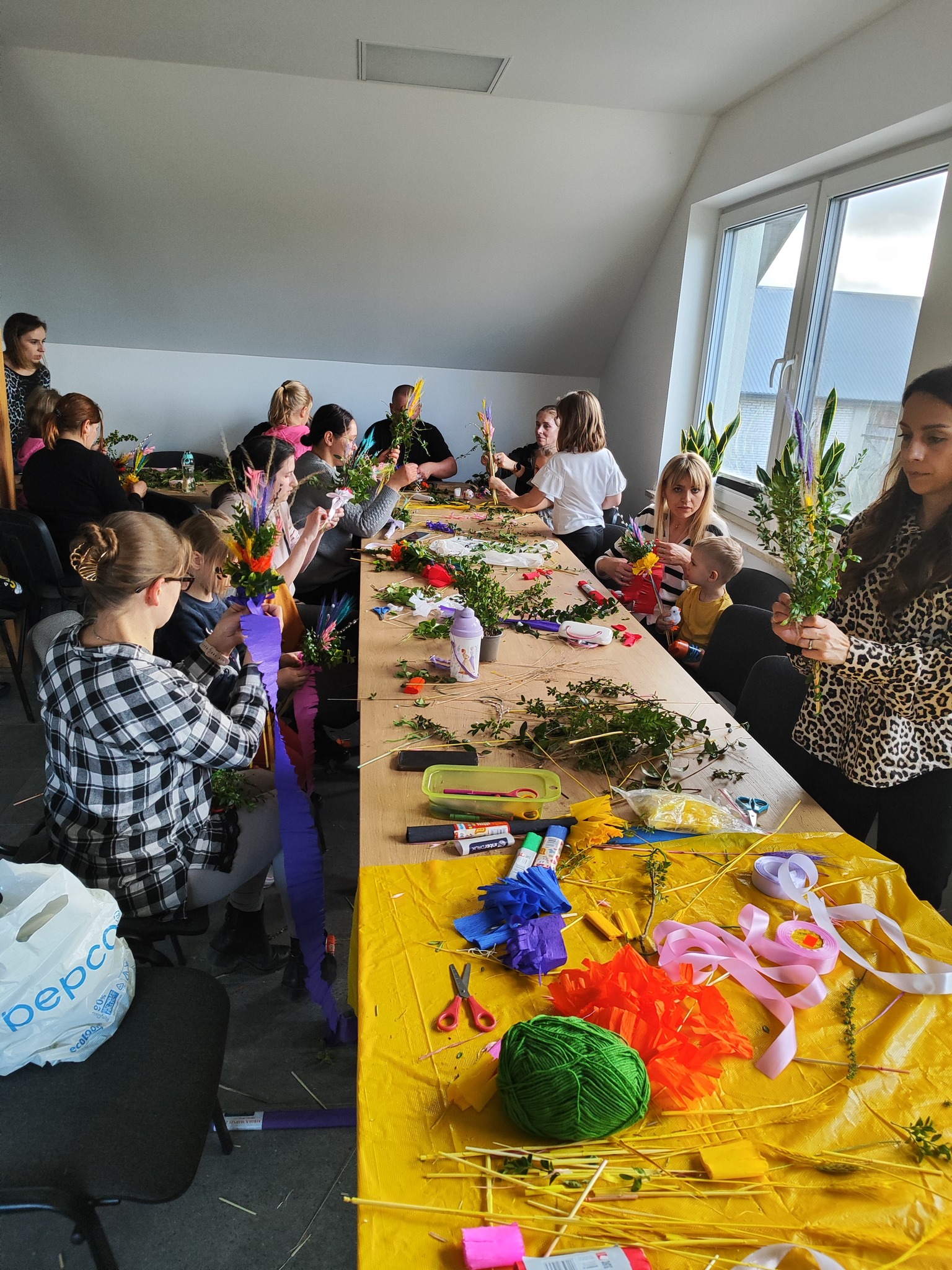 Jak podkreślają organizatorzy, od samego progu GOKiO unosiła się atmosfera radości i ożywionych rozmów. Zarówno najmłodsi, jak i ci nieco starsi mieszkańcy Wisznic z entuzjazmem przystąpili do tworzenia symboli zbliżającej się Niedzieli Palmowej. Stół warsztatowy uginał się pod bogactwem materiałów: feerią barwnych wstążek i bibuł, świeżą zielenią bukszpanu, delikatnością suszonych kwiatów oraz różnorodnością gałązek, które stanowiły bazę dla powstających dzieł sztuki.