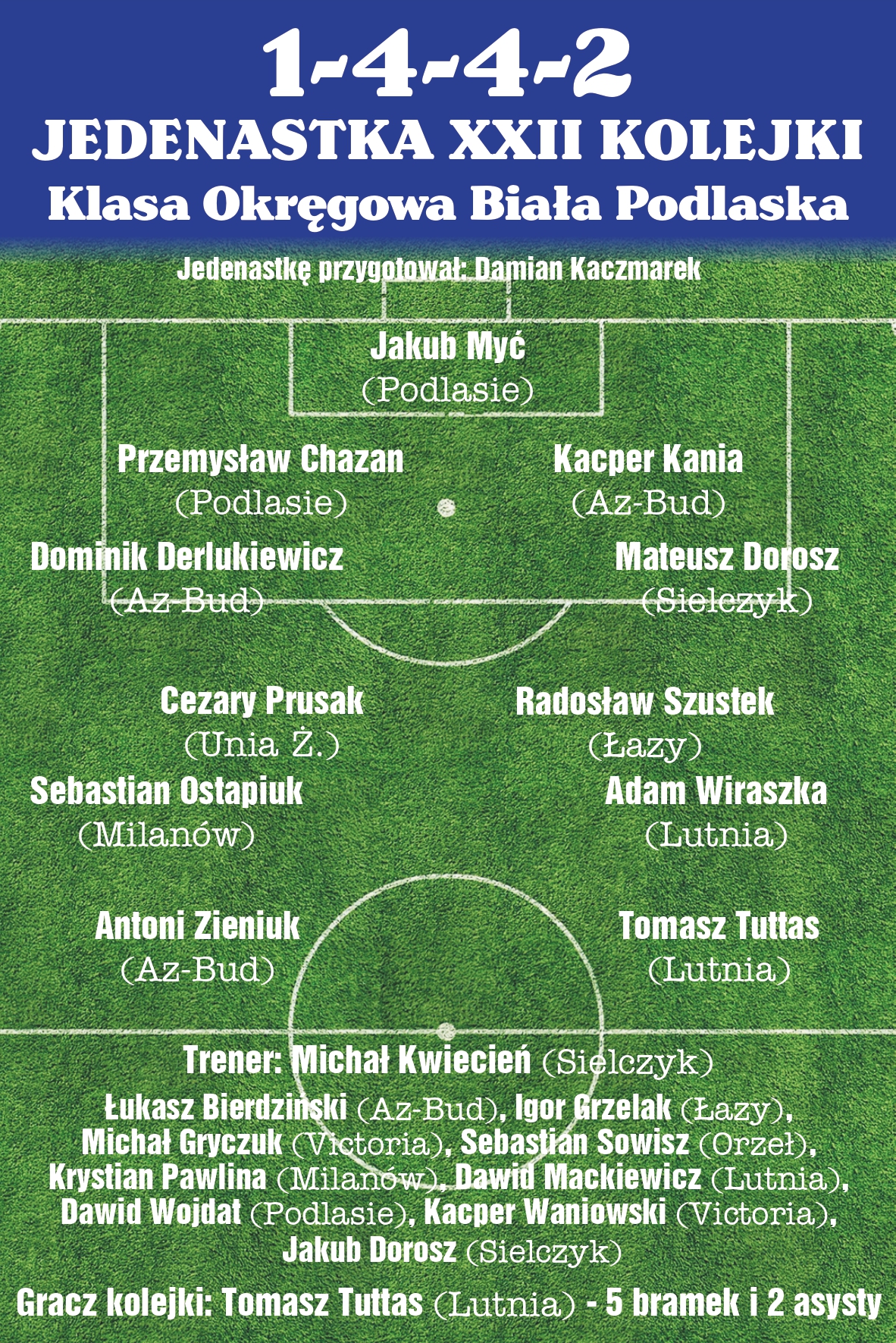LUT- Tomasz Tuttas x5, Adam Wiraszka x2, Dawid Mackiewicz, Dawid Hawryluk, Jakub Giś, Maciej Stachowicz