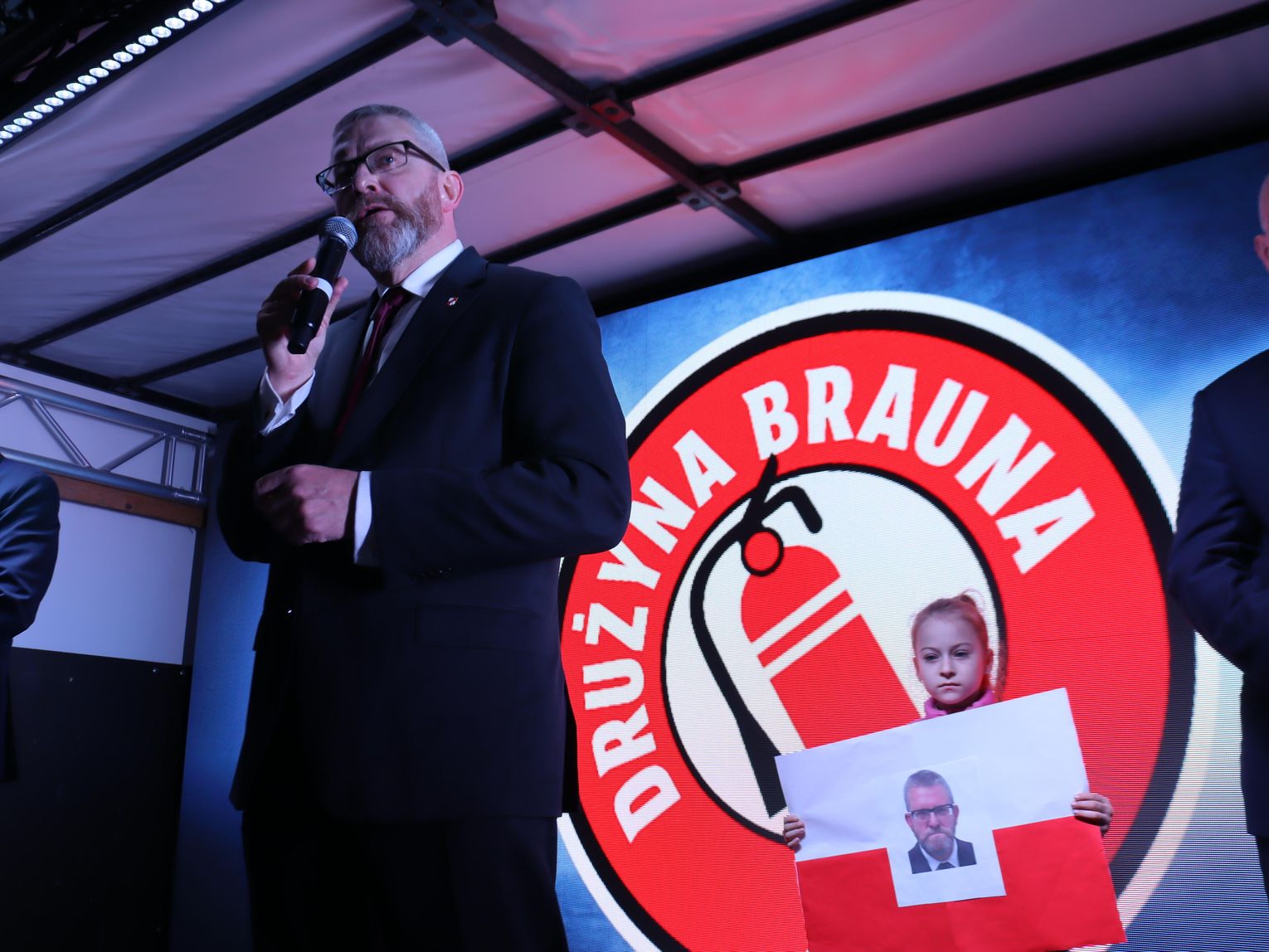 30 kwietnia na placu Wolności odbyło się spotkanie wyborcze z Grzegorzem Braunem. Po przemówieniu kandydata na urząd prezydenta, kilka osób z tłumu mogło zadać pytania. Jako ostatni dostał mikrofon jeden z przeciwników solidarności z pogrążonym w wojnie krajem. Mężczyzna zapytał lidera Konfederacji Korony Polskiej o pomoc w walce z flagą Ukrainy. – Gdzie tu jest jakaś drabina? – zapytał Grzegorz Braun.