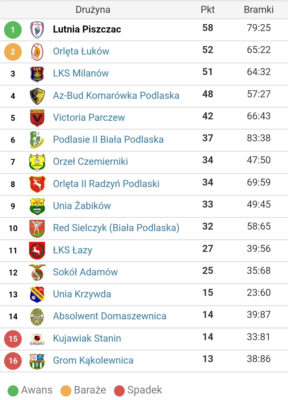 • Orlęta II Radzyń Podlaski vs Unia Krzywda 1:2