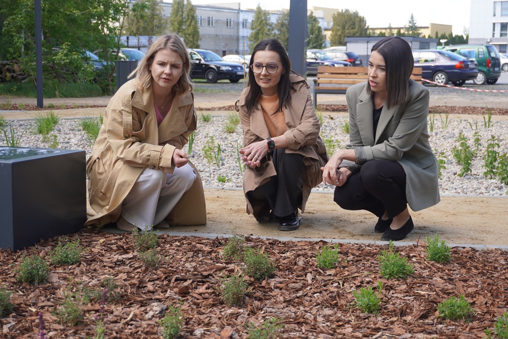 - Mamy też rabaty z roślinami kwitnącymi i aromatycznymi, w tym roślinami leczniczymi, takimi jak lawenda, mięta, rozmaryn czy hyzop lekarski. W rabacie deszczowej posadziliśmy gatunki odporne na okresowe zalewanie i suszę, m.in. kosaćca, sadźca konopiastego, purpurowe wierzby, a także zachowany tu dąb, który rośnie w tym miejscu od wielu lat. W nawiązaniu do niego znalazły się tu również hortensje dębolistne – ich liście przypominają liście dębu - przekazuje Patrycja Niemczuk.