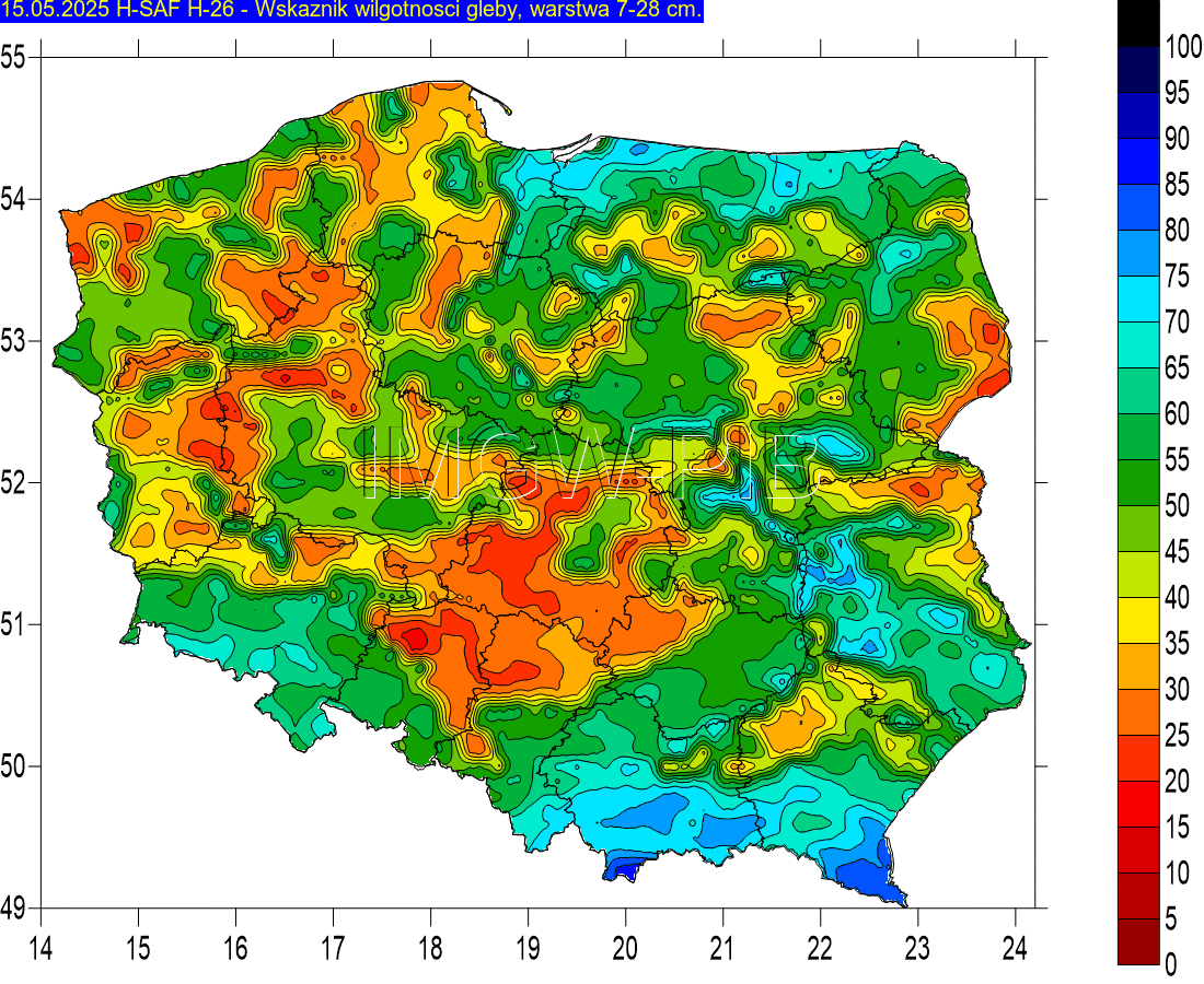 – W warstwie 7-28 cm głębokości w przeważającej części kraju (poza obszarami górskimi i krańcami północno-wschodnimi) wskaźnik wilgotności spadł do 50 proc., a wielu miejscach poniżej 40 proc. Stwarza to problemy dla rolnictwa, przyrody oraz może powodować zwiększone ryzyko pożarowe. Przykładowo, 14 maja w całej Polsce notowaliśmy już 94 stacje z przepływem SNQ, a wydanych było 15 ostrzeżeń hydrologicznych – mówi Michał Sikora-Le.