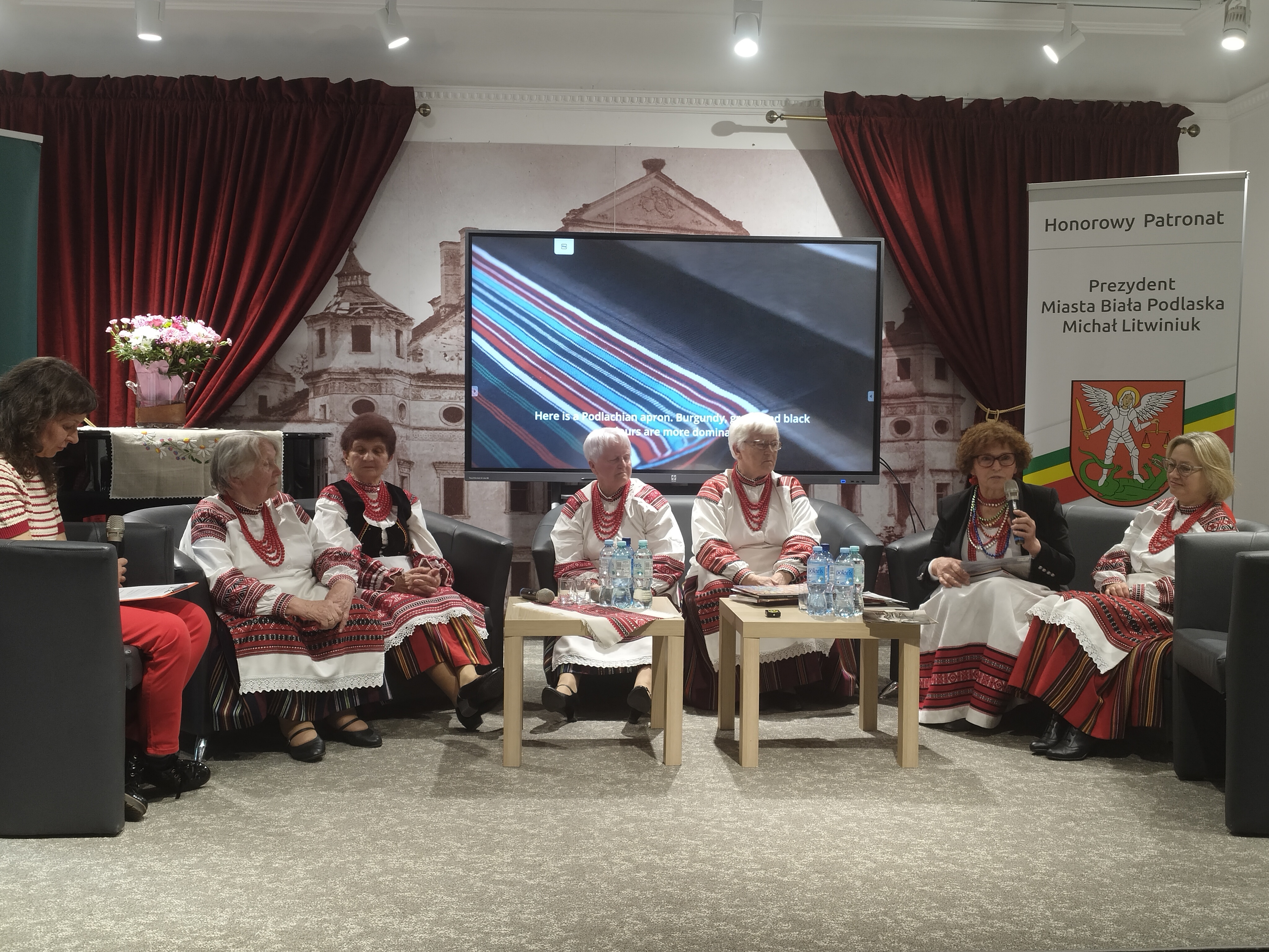 Odbyły się również spotkania z Jarosławem Kurskim, autorem książki „Dziady i dybuki”, redaktorem Gazety Wyborczej ale również wnukiem Teodory Modzelewskiej. znawczyni ludowego tkactwa i hafciarstwa oraz Anną Czachorowską, kustoszką Muzeum Warmii i Mazur w Olsztynie, autorką publikacji o tkaninach ludowych i opiekunką kolekcji Teodory Modzelewskiej. To w kolekcji próbek tkanin zbieranych przez Teodorę Modzelewską znalazł się fragment koszuli kobiecej, który powstał na terenie Lubelszczyzny (wieś Zabłocie, gmina Zabłocie, powiat Biała Podlaska). Jak podaje MWiM: „Próbkę zdobią tzw. perebory – występujący na obszarze południowo-wschodniej Polski, ornament tkacki, który do złudzenia przypomina haft”.