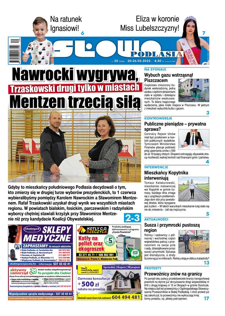 - Nawrocki wygrywa, Mentzen trzecią siłą. Trzaskowski drugi tylko w miastach. Gdyby to mieszkańcy południowego Podlasia decydowali o tym, kto zmierzy się w drugiej turze wyborów prezydenckich, to 1 czerwca wybieralibyśmy pomiędzy Karolem Nawrockim a Sławomirem Mentzenem. Rafał Trzaskowski uzyskał za to drugi wynik we wszystkich miastach regionu. Za to w powiatach bialskim, łosickim, parczewskim i radzyńskim wyborcy chętniej stawiali krzyżyk przy Sławomirze Mentzenie niż przy kandydacie Koalicji Obywatelskiej.