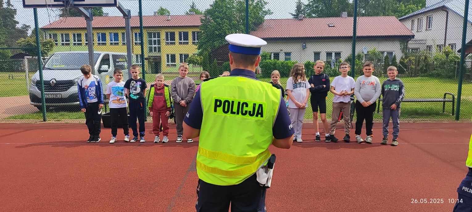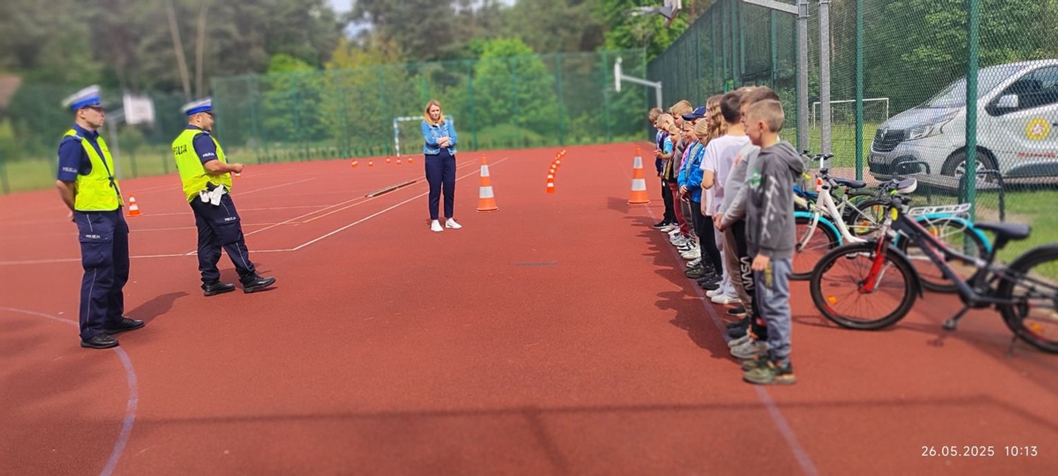 Uzupełnieniem części teoretycznej była aktywna część praktyczna. Na szkolnym placu funkcjonariusze przygotowali specjalny tor przeszkód dla młodych rowerzystów. Dzieci mogły sprawdzić swoje umiejętności jazdy na rowerze, ucząc się jednocześnie, jak zachowywać się na drodze, by uniknąć niebezpiecznych sytuacji.