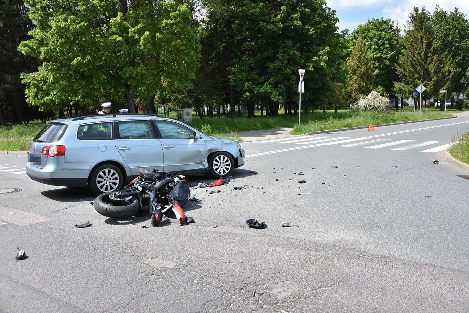 Do pierwszego zdarzenia doszło około godziny 11:00 na ulicy Artyleryjskiej w Białej Podlaskiej. Ze wstępnych ustaleń funkcjonariuszy wynika, że 21-letnia kobieta kierująca osobowym volkswagenem nie ustąpiła pierwszeństwa przejazdu motocykliście, doprowadzając do bocznego zderzenia. Jednośladem marki Suzuki kierował 31-latek. Z obrażeniami ciała został przewieziony do szpitala.