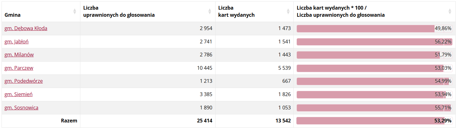 Gminy powiatu parczewskiego: szczegółowe dane PKW z 17:00