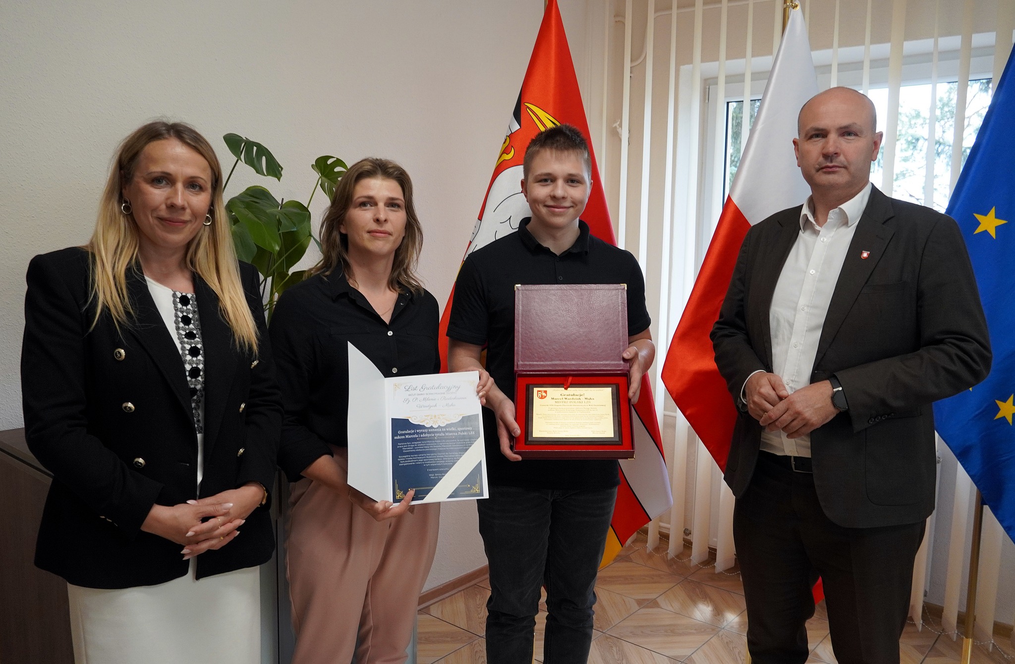 Sukces młodego sztangisty doceniła szkoła i władze gminy. Dyrektor ZPO przyznała, że dla szkoły to duma, ze ich uczeń kończy edukację w palcówce z tytułem Mistrza Polski. Natomiast wójt Marcin Czyżak docenił młodego mistrza nie tylko pochwałą, choć przyznał, ze Marcel rozsławia swoimi dokonaniami gminę i daje świetny przykład jej młodym mieszkańcom. - Zbliżający się finał roku szkolnego wypadł po prostu po mistrzowsku – dodał Marcin Czyżak, wręczając Marcelowi okolicznościowy grawerton, nagrodę wójta w kwocie 1 tys. zł, a rodzicom list gratulacyjny. - Mamy w szeregach uczniów szkół gminy Borki Mistrza Polski, którego postawa i determinacja w osiągnięciu zamierzonego celu może być inspiracją dla nas wszystkich – podsumował wójt.