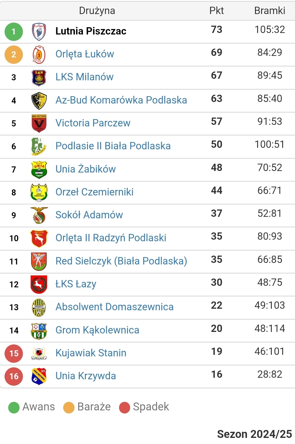 • Podlasie II Biała Podlaska vs Orlęta Łuków 1:1 (1:0)