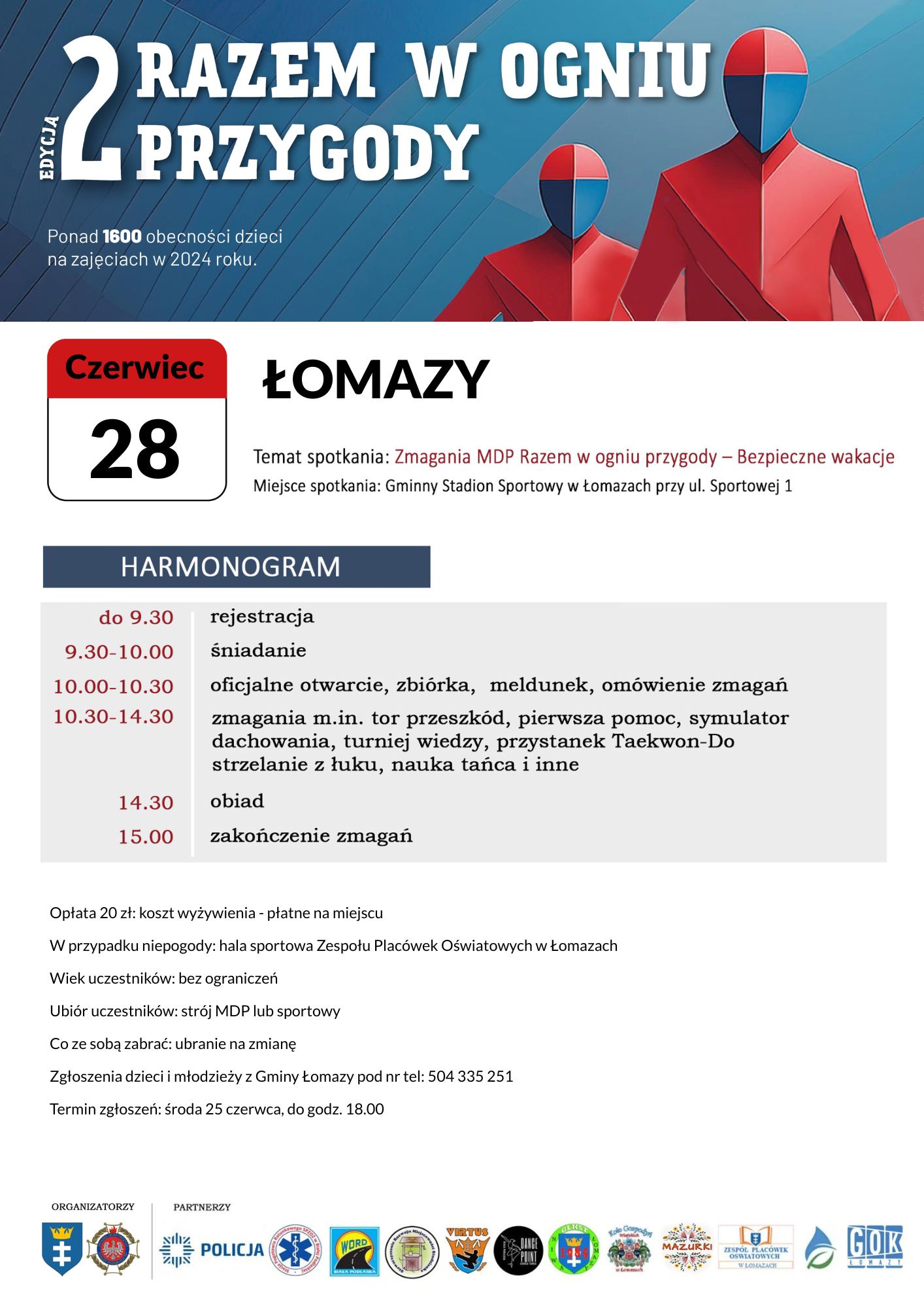 Zmagania MDP Razem w ogniu przygody - Bezpieczne wakacje odbędzie się 28 czerwca na Gminnym Stadionie Sportowym w Łomazach, ul. Sportowa