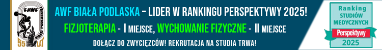 Kształcimy ludzi gotowych do działania w różnych warunkach i środowiskach. Dołączcie do najlepszych! U nas zdobędziecie nie tylko wiedzę, ale i praktyczne umiejętności, które pomogą odnieść sukces w pracy zawodowej, sporcie i życiu. Potwierdza to prestiżowy ranking „Perspektywy 2025”, w którym nasza uczelnia zajęła 1. miejsce w Polsce w kategorii kierunku fizjoterapia oraz 2. miejsce w kategorii wychowanie fizyczne – wśród wszystkich uczelni oferujących te kierunki. To dla nas ogromne wyróżnienie i zarazem dowód wysokiej jakości kształcenia oraz zaangażowania naszej kadry i studentów.