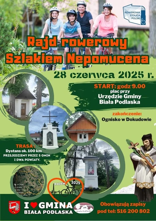 Start zaplanowano na 28 czerwca o godzinie 9:00 z placu przy Urzędzie Gminy Biała Podlaska. Meta znajdować się będzie w Dokudowie, gdzie na uczestników czekać będzie wspólne ognisko. Trasa liczy około 100 kilometrów i przebiega przez teren pięciu gmin oraz dwóch powiatów. Cykliści odwiedzą miejscowości, w których znajdują się figury św. Jana Nepomucena – patrona chroniącego przed powodziami i suszą, którego wizerunki można spotkać w wielu zakątkach regionu.