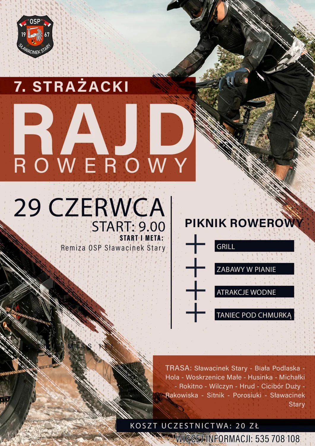 Start zaplanowano na godz. 9:00 przy remizie OSP w Sławacinku Starym. Tam też będzie meta rajdu. Trasa przebiega przez malownicze miejscowości regionu, m.in. Białą Podlaską, Woskrzenice Małe, Rokitno, Wilczyn i Cicibór Duży. Uczestnicy przejadą przez kilkanaście punktów, a całość zakończy się piknikiem rowerowym.