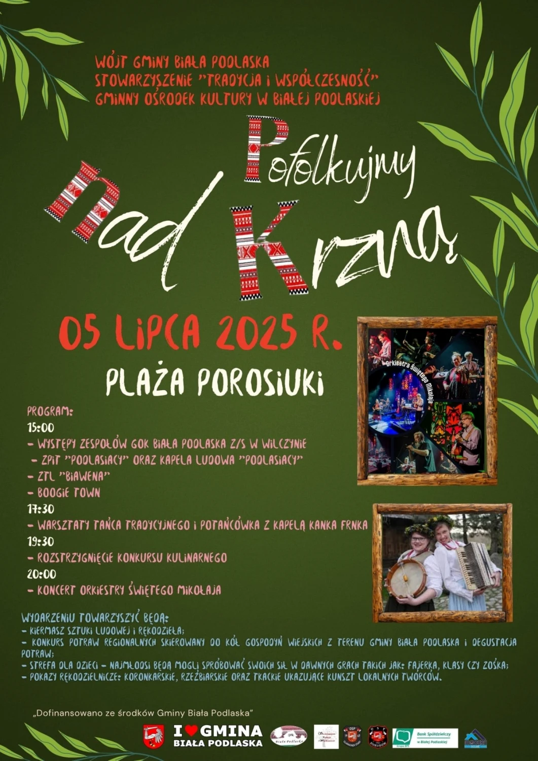 5 lipca o godzinie 15:00 na malowniczej plaży w Porosiukach odbędzie się impreza folkowa pod hasłem „Pofolkujmy nad Krzną”. To plenerowe wydarzenie, jakiego dotąd nie było, zapowiada prawdziwą ucztę dla miłośników muzyki ludowej, tańca i regionalnych tradycji.