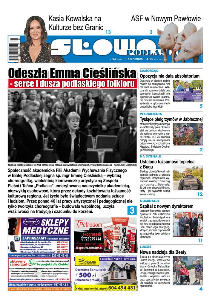 - Odeszła Emma Cieślińska - serce i dusza podlaskiego folkloru. Społeczność akademicka Filii Akademii Wychowania Fizycznego w Białej Podlaskiej żegna śp. mgr Emmę Cieślińską – wybitną choreografkę, wieloletnią kierowniczkę artystyczną Zespołu Pieśni i Tańca „Podlasie”, emerytowaną nauczycielkę akademicką, niezwykłą osobowość, która przez dekady kształtowała tożsamość kulturową regionu. Jej życie było świadectwem oddania sztuce i ludziom. Przez ponad 40 lat pracy artystycznej i pedagogicznej nie tylko tworzyła choreografie – budowała wspólnotę, uczyła wrażliwości na tradycję i szacunku do korzeni. (zdjęcie z zasobów bialskiej filii AWF z 2019 roku z nadania sali wykładowej imienia prof. Ryszarda Cieślińskiego - męża Emmy Ciesielskiej)