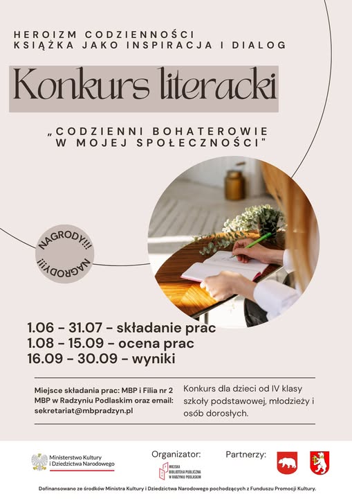 Konkurs realizowany w ramach zadania „Heroizm codzienności – książka jako inspiracja i dialog”, dofinansowanego ze środków Ministra Kultury i Dziedzictwa Narodowego.