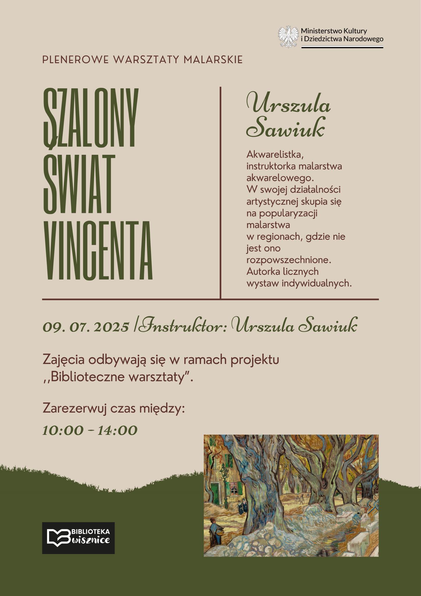 Projekt skierowany jest do dzieci w wieku 9-12 lat z gminy Wisznice. Najbliższe zajęcia, jakie się odbędą, to warsztaty plastyczne "Szalony świat Vincenta". Poprowadzi je Urszula Sawiuk. Warsztaty odbędą się 9 lipca w godz. 10-14.