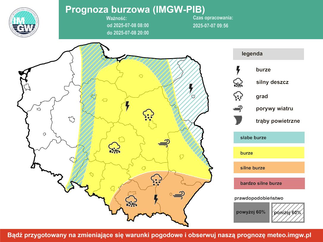 IMGW wydał już ostrzeżenia hydrologiczne dla regionu rzeki Krzny, a także alerty meteorologiczne związane z możliwymi burzami z gradem i silnym wiatrem.
