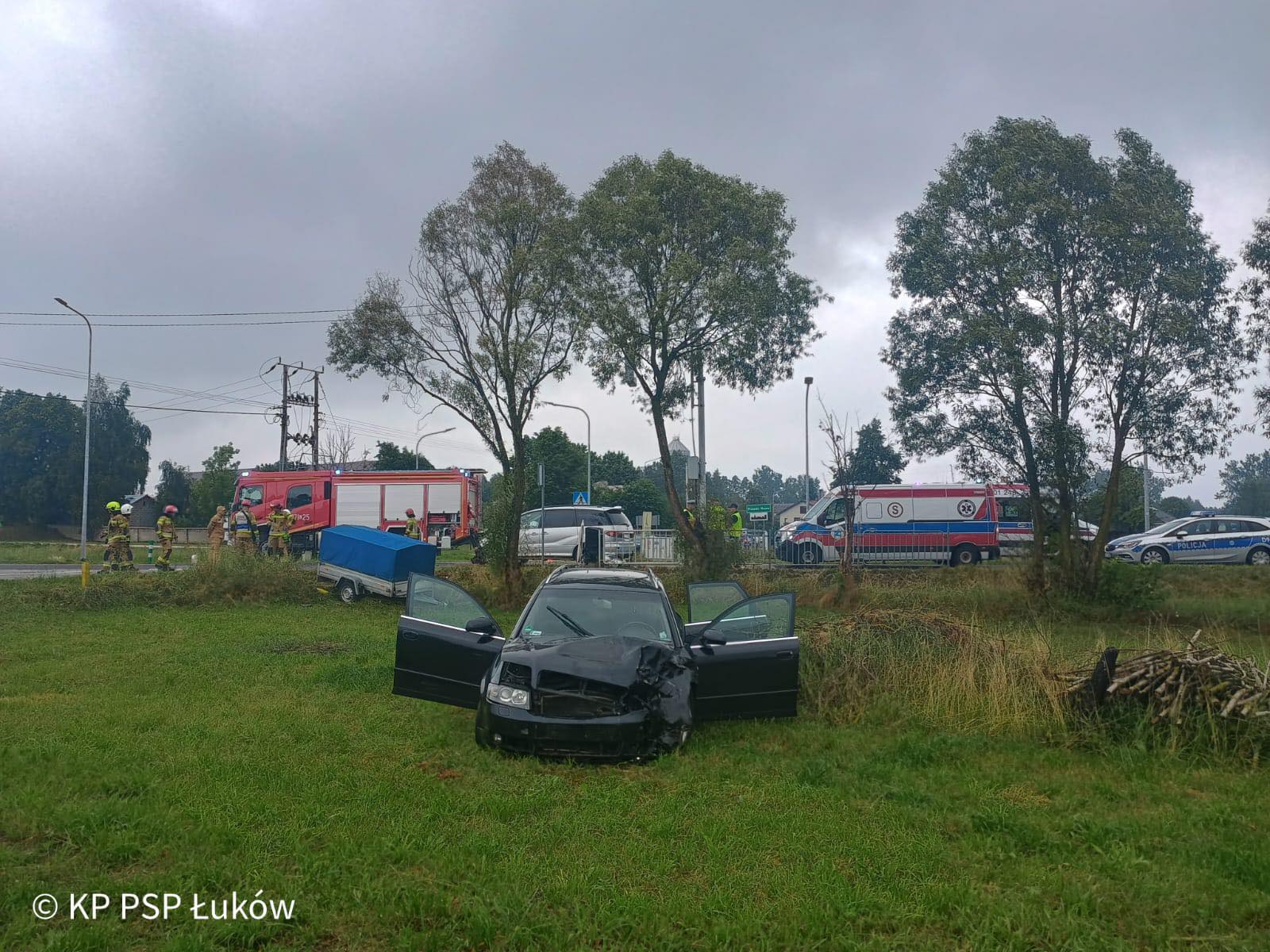 Kilka godzin później w powiecie doszło do kolejnego wypadku: Samochód uderzył w drzewo, dwie osoby w szpitalu [ZDJĘCIA]