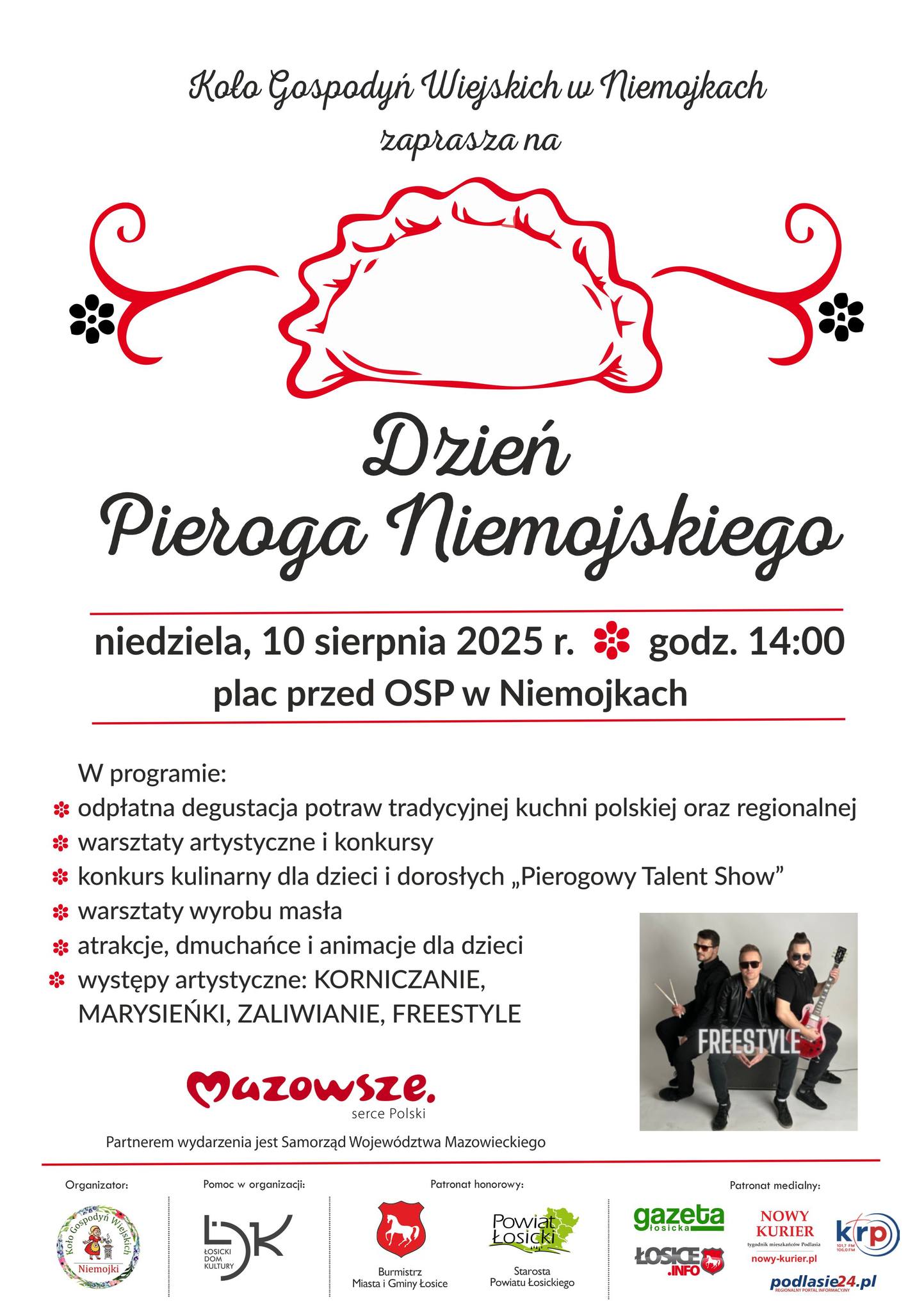 Od godziny 14:00 na uczestników czekać bęzie wiele atrakcji. Głównym bohaterem dnia będzie oczywiście pieróg niemojski – lokalna specjalność, której receptura od pokoleń przekazywana jest z rąk do rąk wśród gospodyń z Niemojek. To pieróg nadziewany mieszanką ziemniaków, białego sera i świeżych ziół, ręcznie lepiony, gotowany lub pieczony, a następnie podawany z masłem i cebulką.