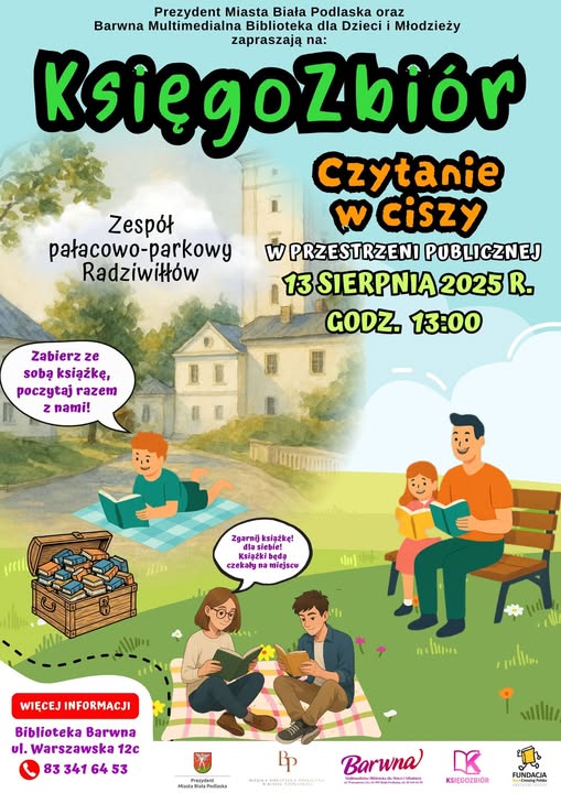 Akcja „KsięgoZbiór – czytanie w ciszy” zaplanowana jest na 13 sierpnia. Początek wydarzenia o godzinie 13:00. Każdy uczestnik proszony jest o zabranie swojej ulubionej książki, by wspólnie z innymi wziąć udział w symbolicznym, cichym czytaniu. Dla osób, które nie przyniosą własnych lektur, dostępne będą książki na miejscu - można je będzie wybrać z przygotowanej skrzyni.