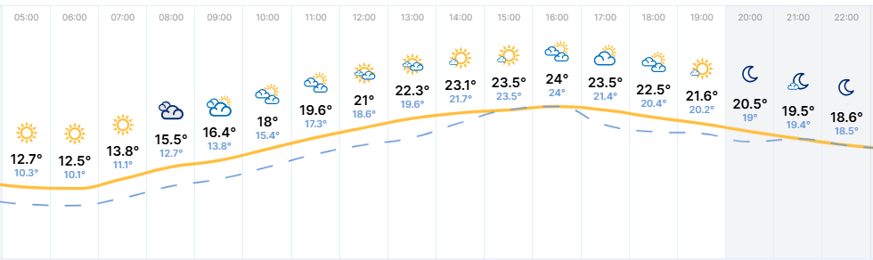 Noc z niedzieli na poniedziałek zapowiada się rześka – lokalnie temperatura spadnie do około 12–13°C.