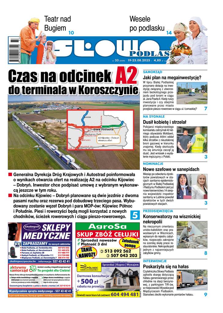 - Czas na odcinek A2 do terminala w Koroszczynie. Generalna Dyrekcja Dróg Krajowych i Autostrad poinformowała o wynikach otwarcia ofert na realizację A2 na odcinku Kijowiec – Dobryń. Inwestor chce podpisać umowę z wybranym wykonawcą jeszcze w tym roku.