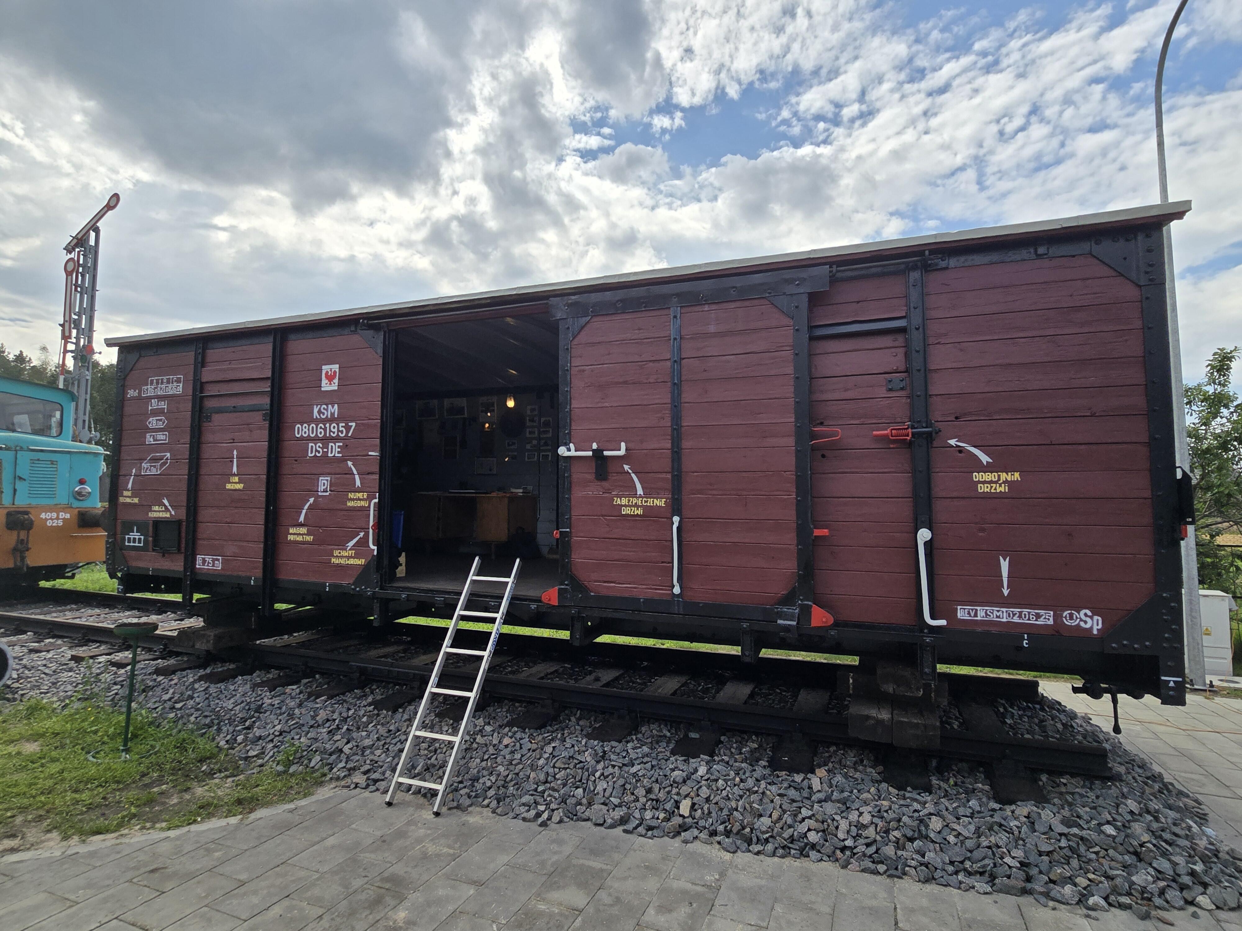 – Historia naszego wagonu towarowego dwuosiowego jest dość trudna do odtworzenia. Wagon został wybudowany w roku 1899 w zakładzie produkcji wagonów Waggonfabrik „GEBR LUETTGENS BUBBACH SARR” w Niemczech. Po zakończeniu II wojny światowej Polskie Koleje Państwowe przejęły stosunkowo dużą grupę wagonów towarowych. W śród nich znalazło się ok. dwudziestu wagonów krytych specjalistycznych, przeznaczonych do przewozu owoców i warzyw. Wagon ten był eksploatowany, naprawiany i modernizowany przez PKP do połowy lat osiemdziesiątych. Wagon został zakupiony przez naszą firmę w roku 2024. U ostatniego właściciela służył jako magazyn podręczny – opowiada Sławomir Denicki.