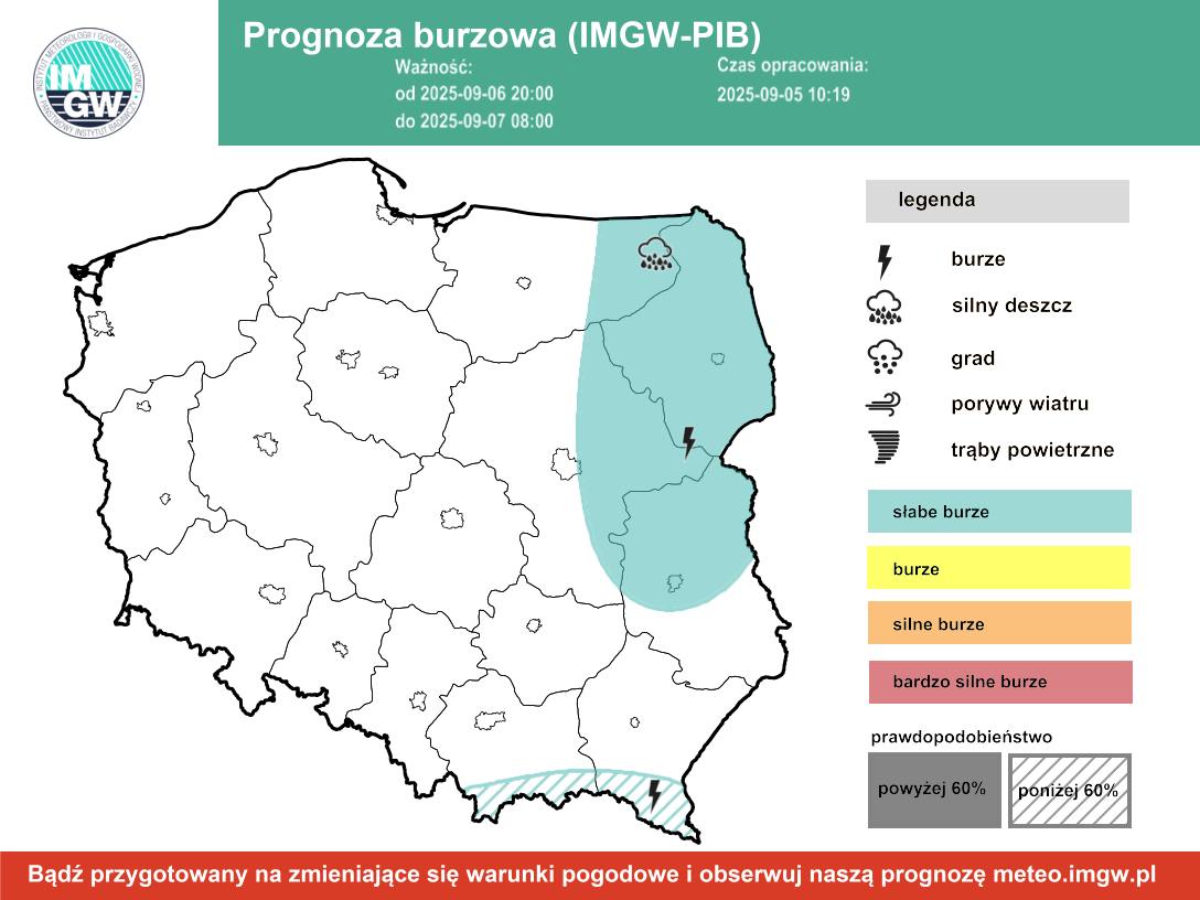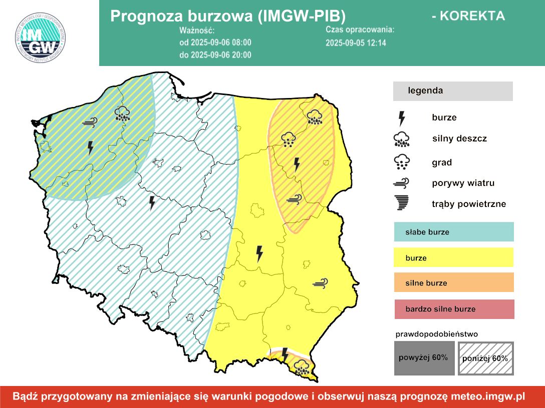 Noc z piątku na sobotę będzie niespokojna – prognozowane są burze z intensywnym deszczem do 35–50 mm, porywami wiatru nawet do 85 km/h i lokalnym gradem. Obowiązują ostrzeżenia II stopnia dla powiatów bialskiego, parczewskiego, łosickiego i łukowskiego. Temperatura minimalna wyniesie 15–17°C, ciśnienie 1018 hPa, możliwe mgły ograniczające widzialność do 300 m.