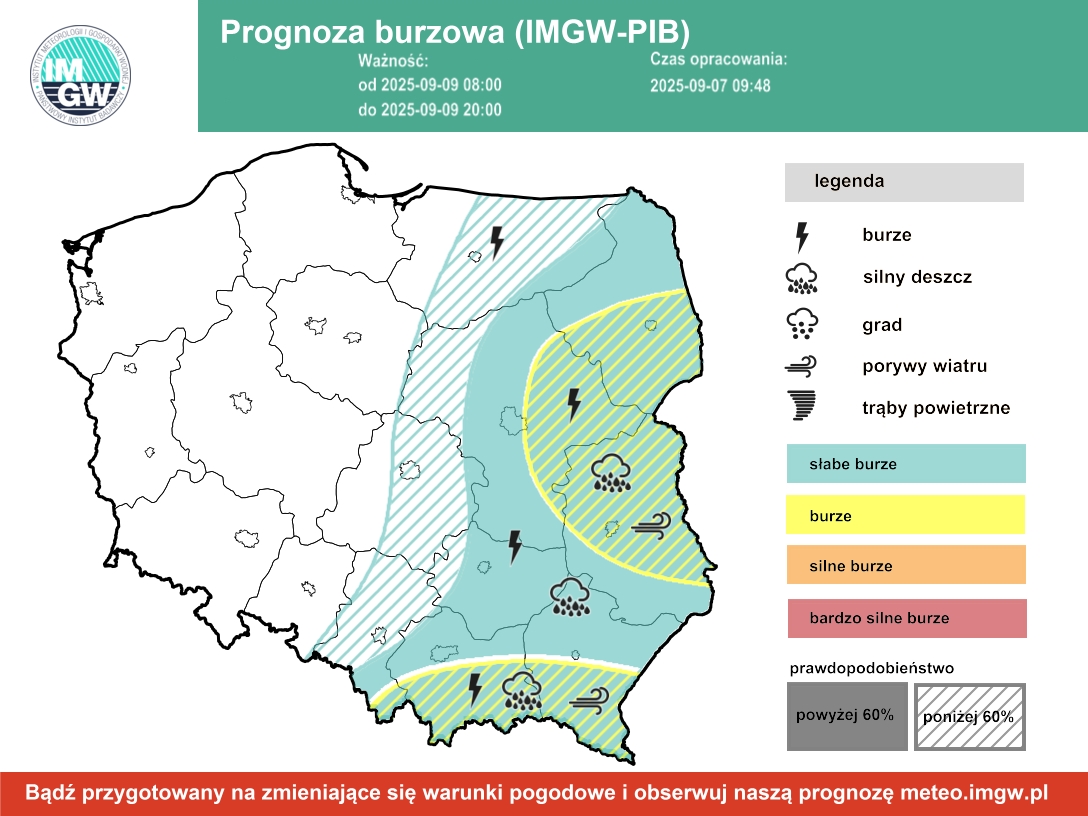 W ciągu dnia zrobi się cieplej – termometry pokażą do 23–25°C. Spodziewane są burze z opadami do 25 mm. Wiatr słaby i umiarkowany, ale w czasie burz porywy osiągną nawet 65 km/h.