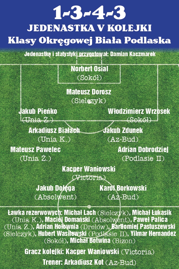 6.kolejka: LKS Milanów - Podlasie II Biała Podlaska 2:3 (Emil Mazurek 5', Wiktor Niziołek 69' - Hubert Wasilewski 11', Adrian Siemieniuk 67', Adrian Dobrodziej 71'), Absolwent Domaszewnica - ŁKS Łazy 5:3 (Jakub Dołęga 48', 51', 70', 83' (RK), Maciej Domański 56' - Igor Grzelak 35', 75', Daniel Pliszka 45'+1), LZS Sielczyk - Kujawiak Stanin 4:0 (Bartłomiej Pastuszewski 44', Mateusz Dorosz 65', Bartłomiej Romaniuk 86', Jakub Syryjczyk 90'), Sokół Adamów - Grom Kąkolewnica 1:0 (Yilmar Hernandez 64'), Unia Krzywda - Orzeł Czemierniki 3:2 (Cezary Bieńczyk 45', Arkadiusz Białach 49', 71' - Jan Bożym 13', 20'), Bizon Jeleniec - KS Drelów 2:2 (Filip Okuń 9', Michał Botwina 86' - Adrian Hołownia 3', Krzysztof Kondraciuk 28'), Lutnia Piszczac - Unia Żabików 1:2 (Tomasz Gmur 86' - Mateusz Pawelec 49', 84'), Az-Bud Komarówka Podlaska - Victoria Parczew 6:5 (Karol Borkowski 5', 19', Igor Paczuski 15', Jakub Zdunek 30', 53', Kacper Kania 90'+2 - Kacper Waniowski 48', 71', 75', 81, 83').