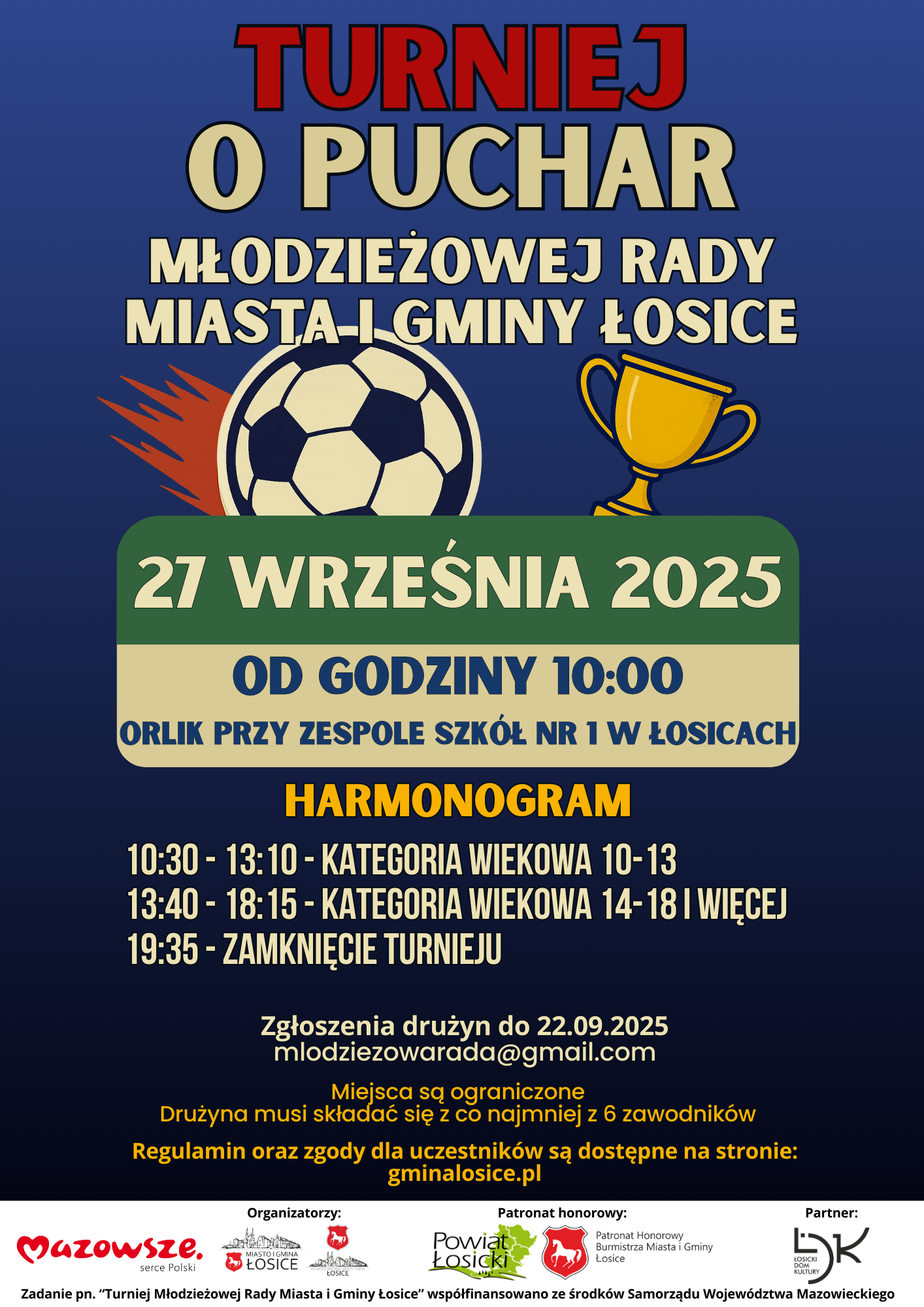 Zgłoszenia drużyn przyjmowane są do 22 września mailowo pod adresem [email protected] oraz w biurze turnieju w Łosickim Centrum Informacji przy ul. Berka Joselewicza 13. Liczba miejsc jest ograniczona, a każda drużyna musi liczyć co najmniej sześciu zawodników.