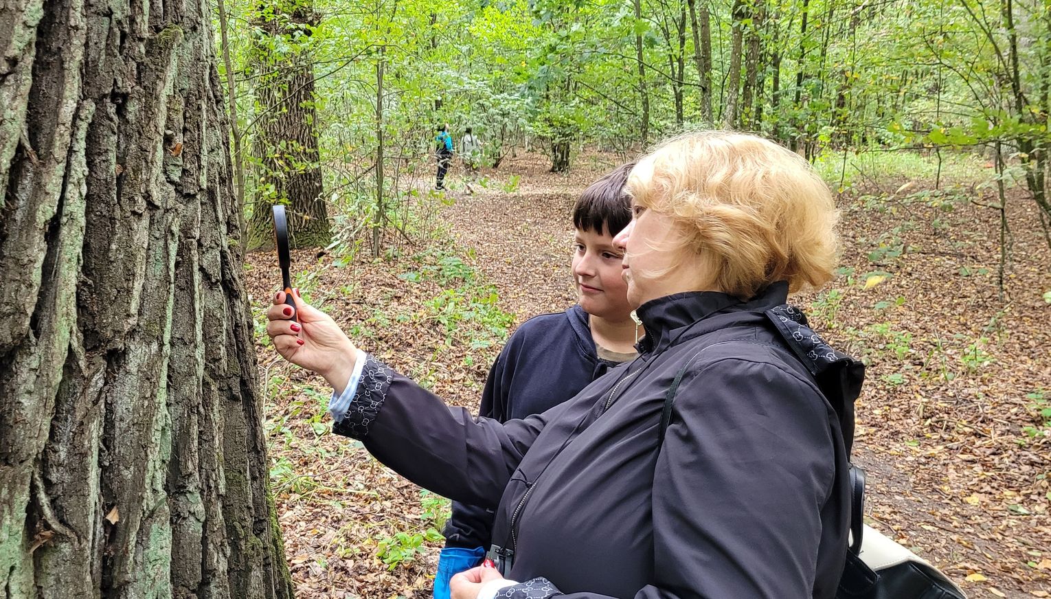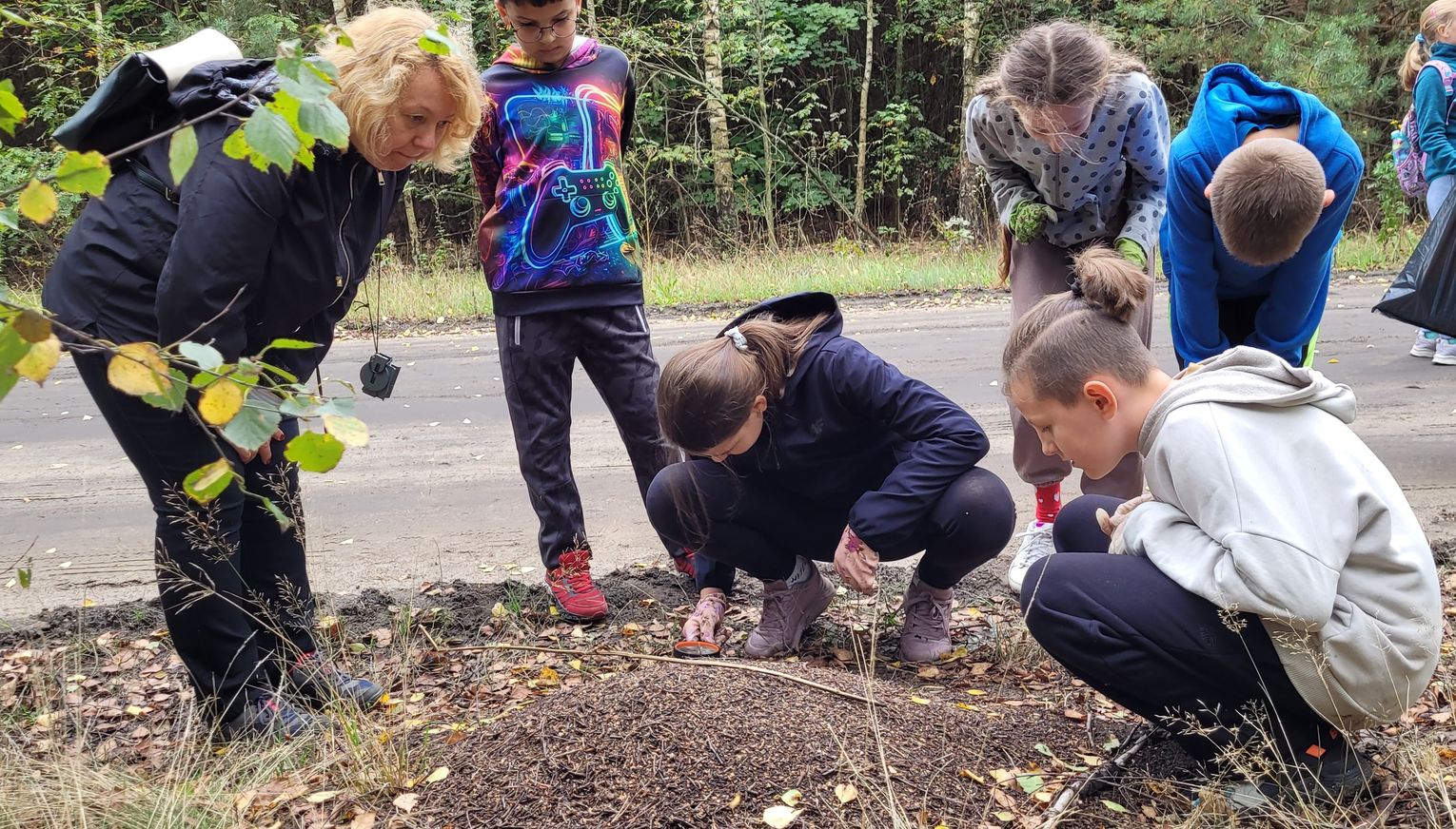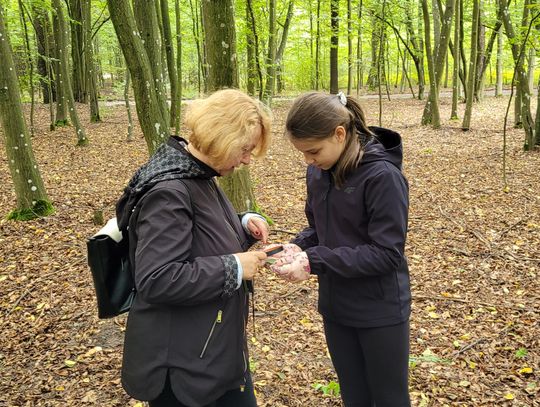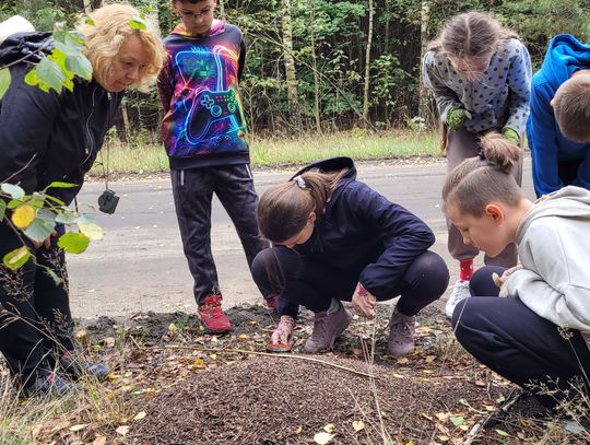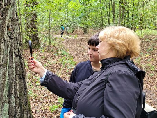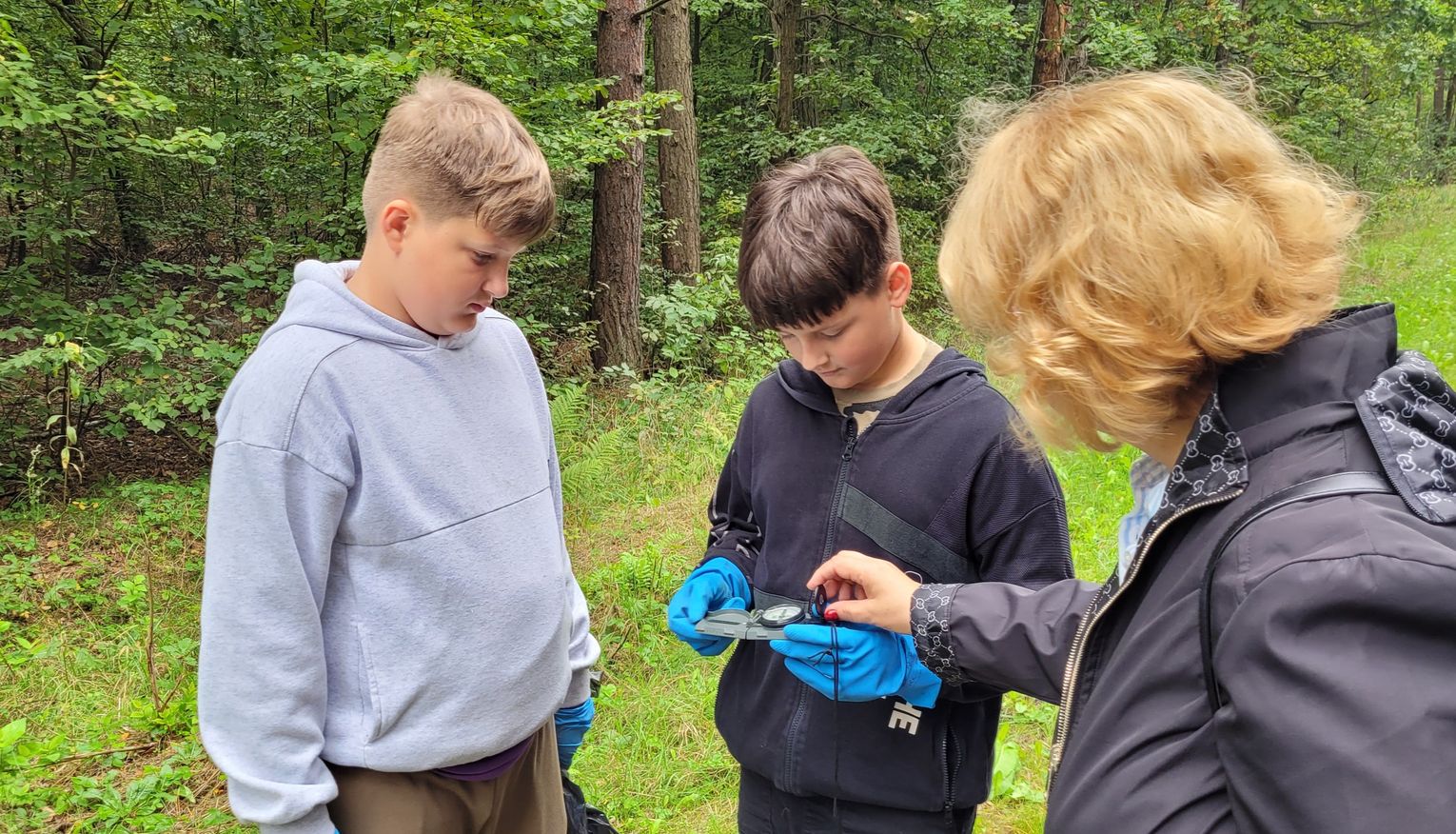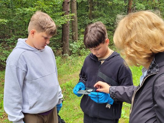 Wizyta w lesie stała się również okazją do tego, aby zastosować w praktyce wiadomości poznane podczas zajęć. Uczniowie używając szkła powiększającego, obserwowali owady i rośliny występujące w runie leśnym, a przy pomocy kompasu próbowali wyznaczyć swoje położenie w terenie.