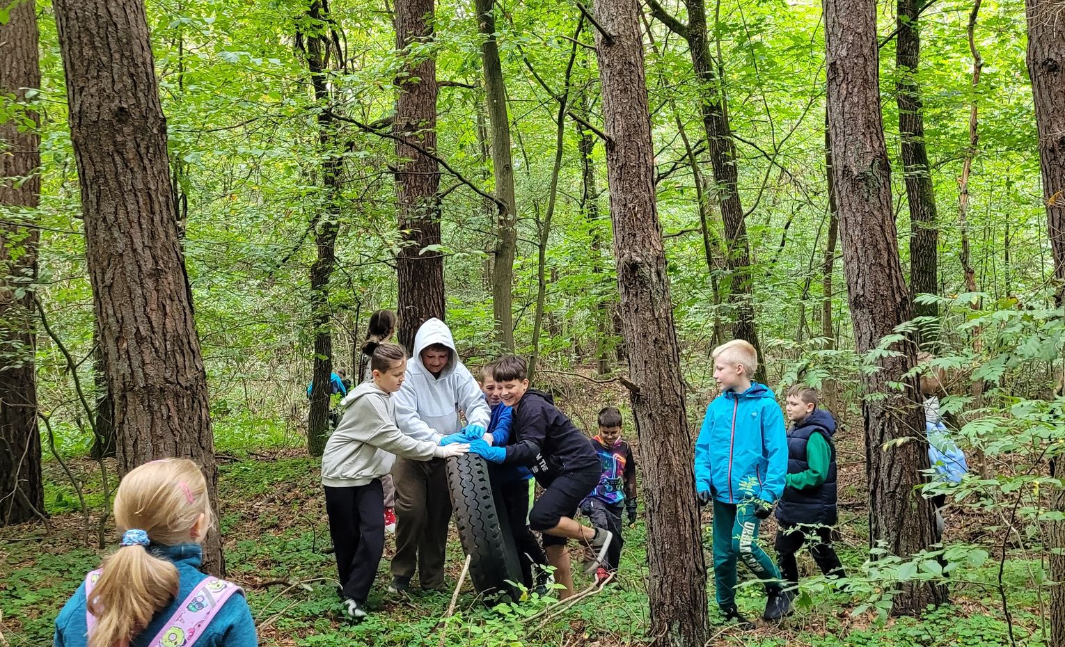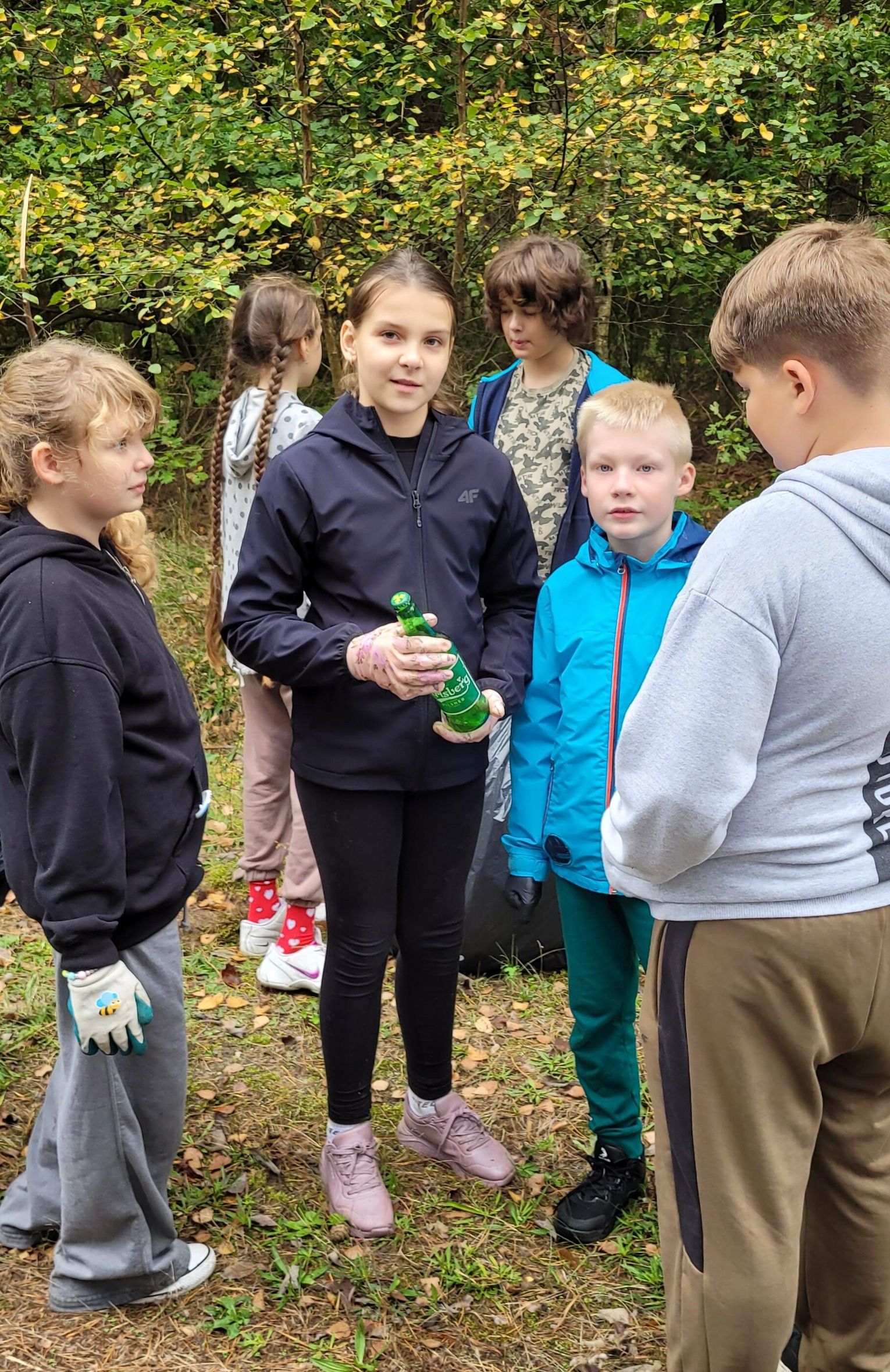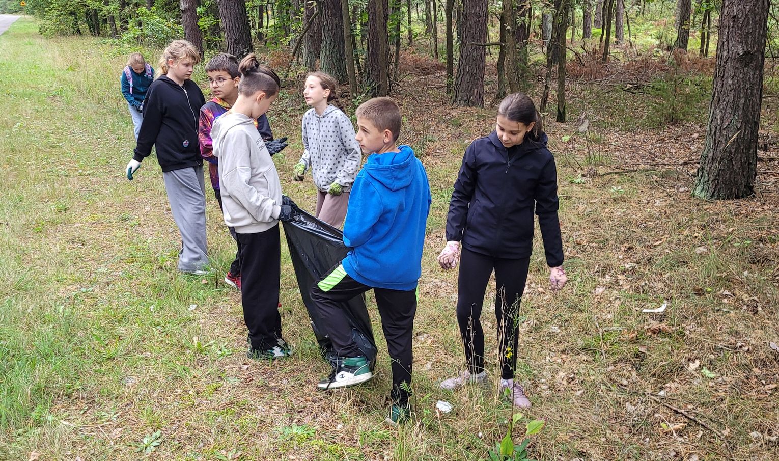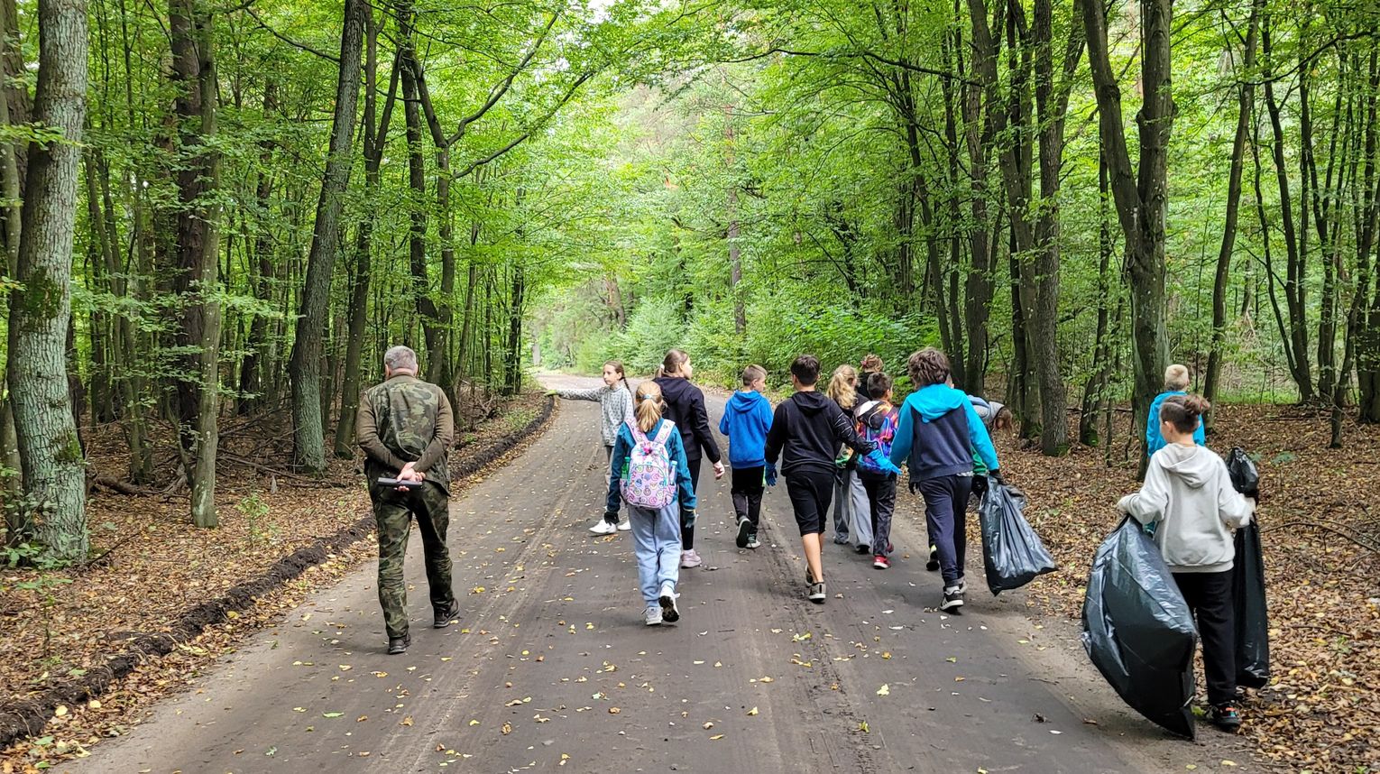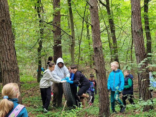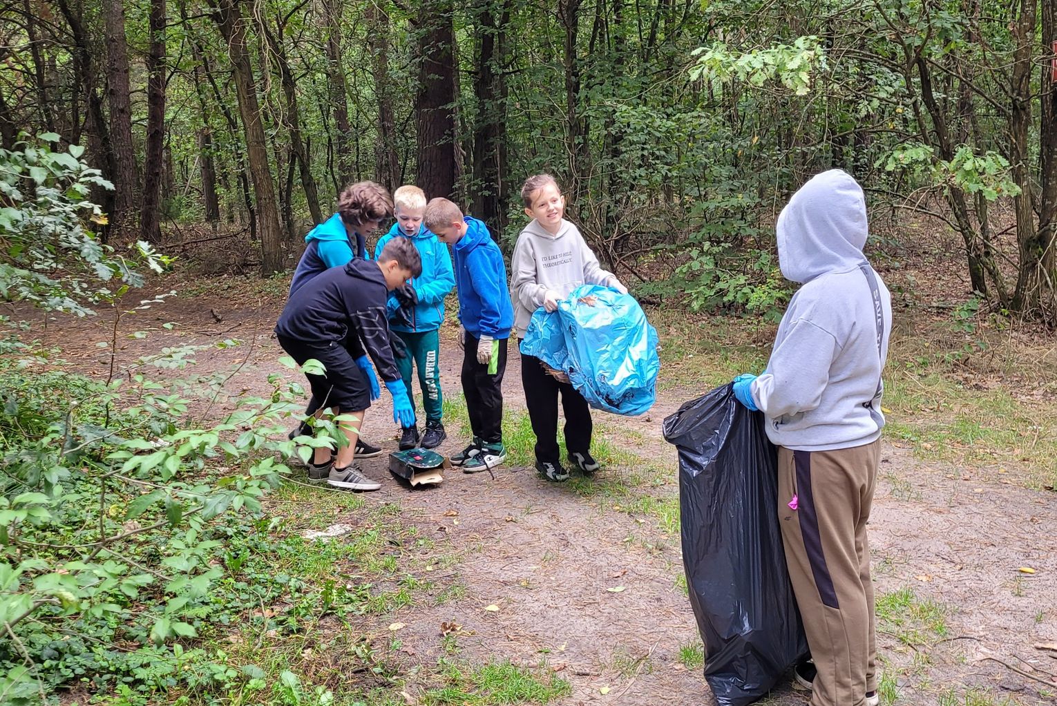 Uczniowie pod opieką Doroty Prokopiuk oraz Ernesta Kuszneruka wybrali się do lasu położonego na terenie Leśnictwa Zalesie, aby oczyścić środowisko przyrodnicze ze znajdujących się w nim odpadków.