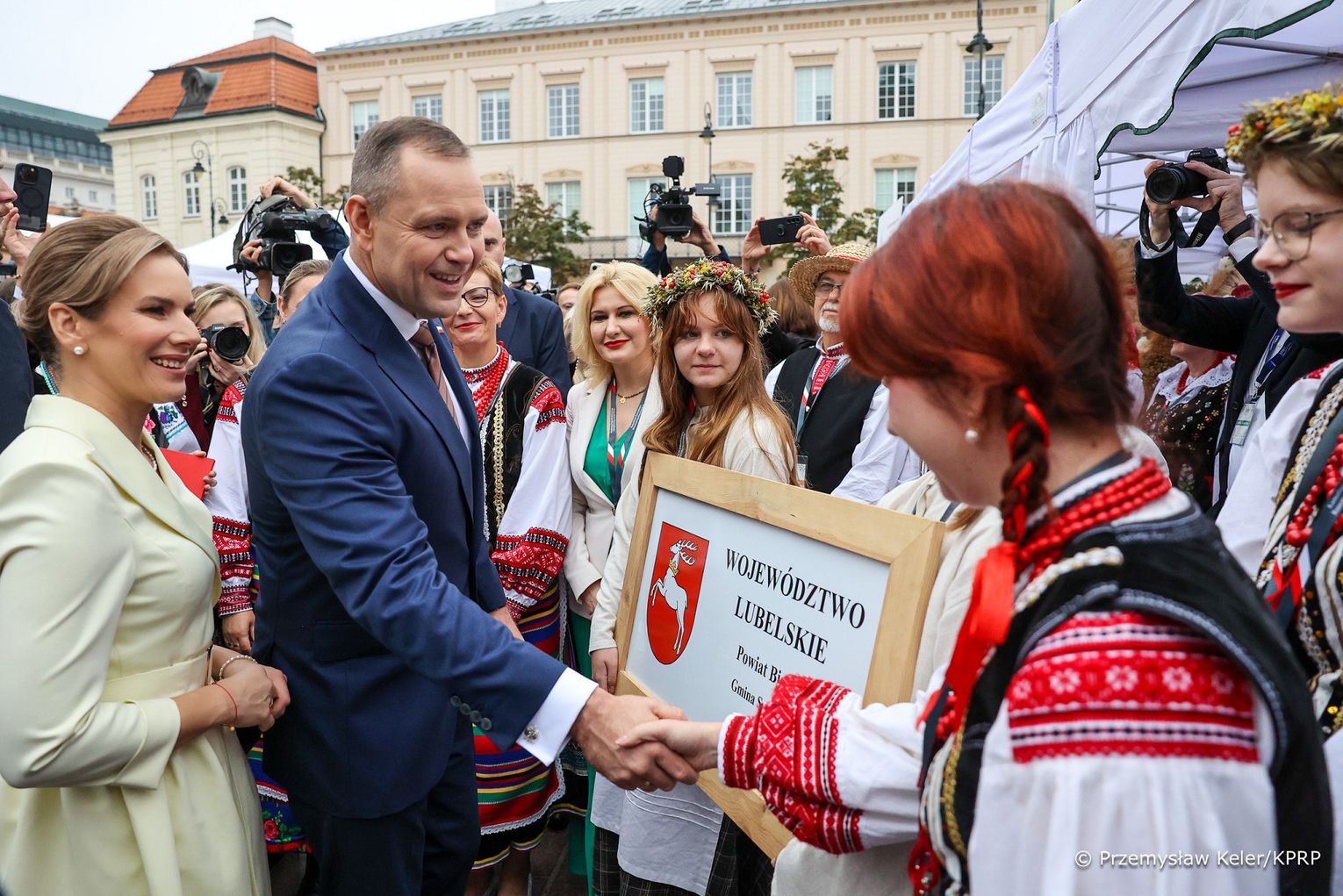 Delegacja z województwa lubelskiego, w tym mieszkańcy gminy Sosnówka, dyrektor Gminnego Ośrodka Kultury w Sosnówce Jolanta Mikulska, przedstawiciele gminy Sosnówka: wójt Marcin Babkiewicz i sekretarz Barbara Rabczewska, powiatu bialskiego: radna Renata Stefaniuk oraz dyrektor Departamentu Rolnictwa i Rozwoju Wsi lubelskiego urzędu marszałkowskiego - Ewa Szałachwiej, spotkali się z parą prezydencką. W imieniu delegacji wicemarszałek województwa Marek Grzegorz Wojciechowski wręczył prezydentowi i pierwszej damie regionalne upominki: