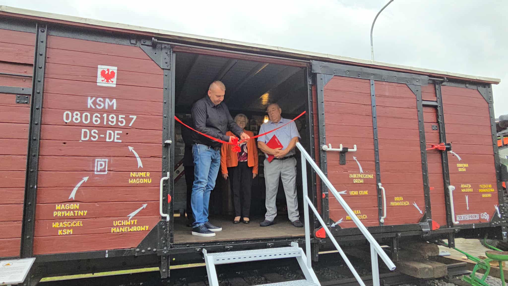 Głównym eksponatem jest zabytkowy, dwuosiowy wagon towarowy, który powstał w Niemczech w 1899 roku. Po II wojnie światowej trafił do Polski, gdzie był eksploatowany przez PKP aż do lat 80. Odnaleziony na złomowisku, został zakupiony przez firmę Kolejowy Serwis Mobilny i w dwóch etapach przywracany do dawnej świetności.