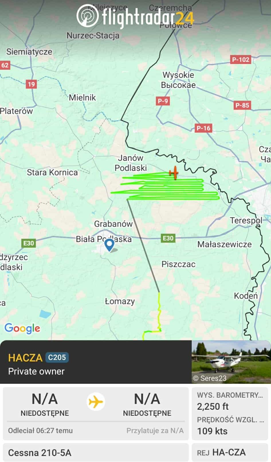 W województwie lubelskim trwa akcja zrzutu szczepionki dla lisów przeciwko wściekliźnie. Preparat rozrzucany jest z samolotów na terenach leśnych i polnych. Na Flightradar24 można obserwować trasę lotu maszyny Cessna 210-5A, która krąży dziś m.in. nad okolicami Janowa Podlaskiego, Zaczopek, Nepli i aż po Klonowicę Dużą. Samoloty biorące udział w akcji widoczne są również na niebie nad powiatem włodawskim, parczewskim oraz w rejonie Chełma.