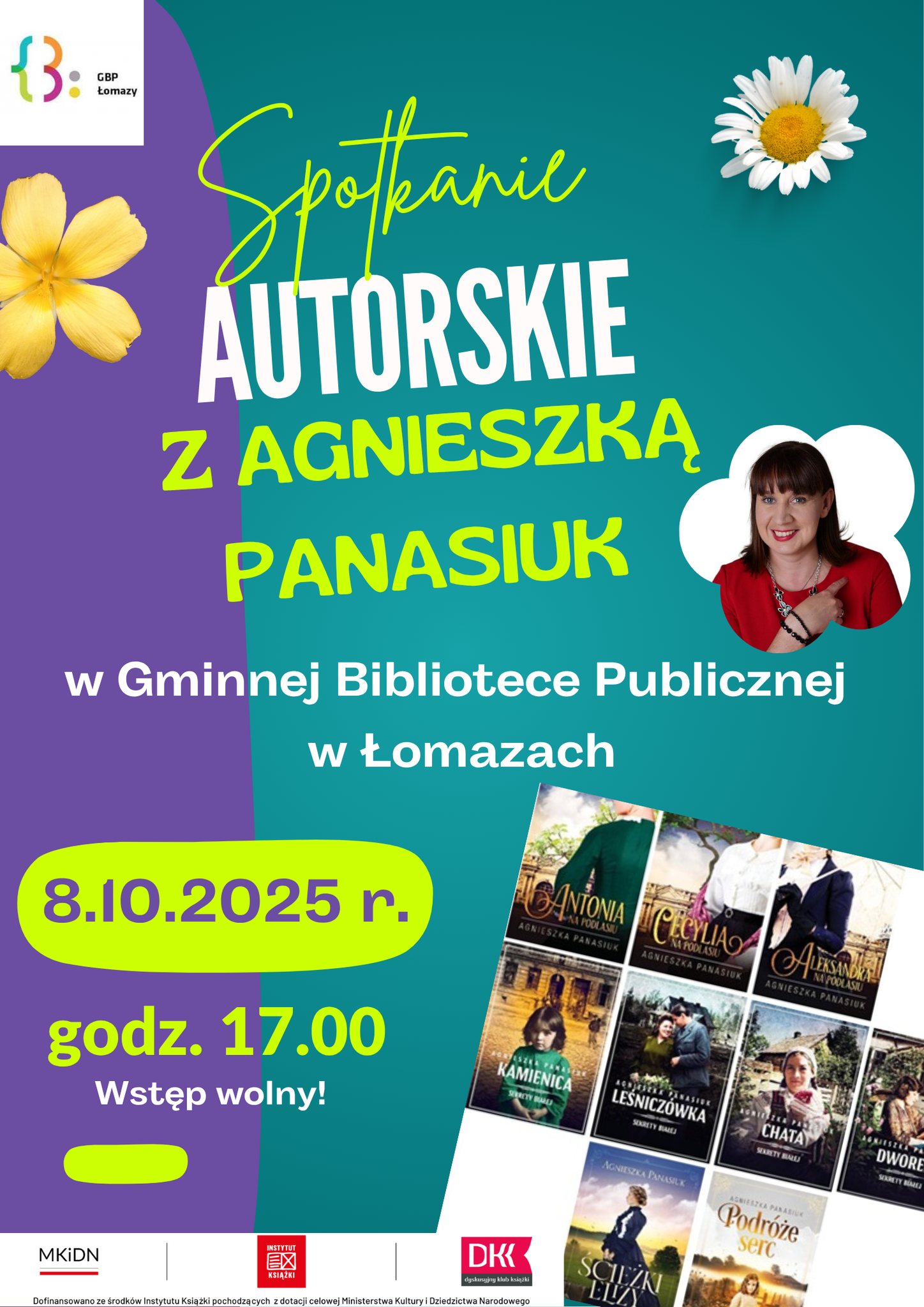 - To niepowtarzalna okazja, by poznać kulisy powstawania jej książek, dowiedzieć się, co ją inspiruje i porozmawiać o historii, emocjach i codzienności splecionych w literackie opowieści - zapewnia dyrektor GBP Agata Chwalewska. - W książkach Agnieszki Panasiuk przeszłość spotyka się z teraźniejszością, a lokalne motywy tworzą tło dla poruszających historii. Autorka zadebiutowała powieścią „Podróże serc”, która zachwyciła wielu czytelników - dodaje.