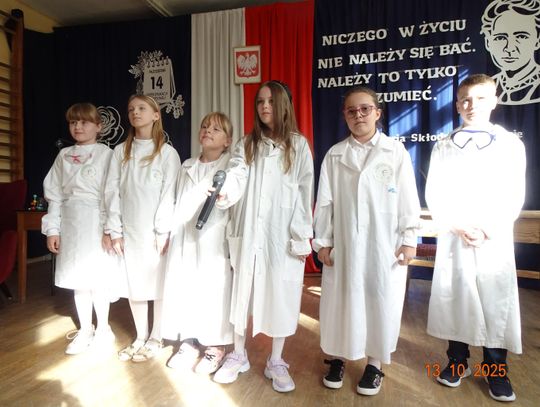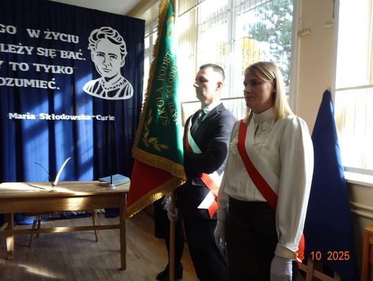 Ten dzień był również wyjątkowy dla uczniów klasy pierwszej, którzy tego dnia zostali pasowani na uczniów Szkoły Podstawowej im. M. Skłodowskiej-Curie oraz złożyli ślubowanie.