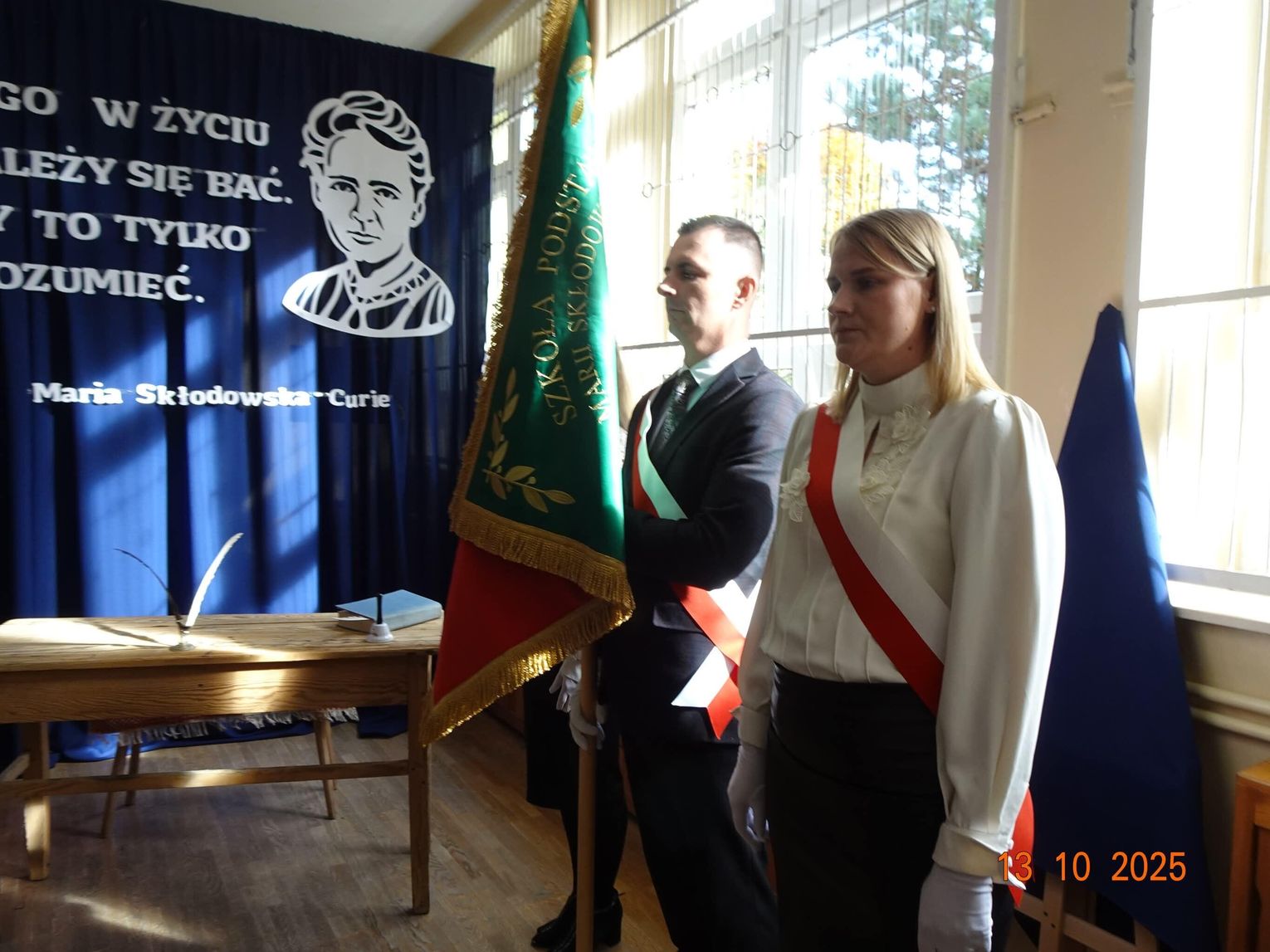 Wśród zaproszonych gości znaleźli się przedstawiciele władz samorządowych na czele z wójtem gminy Zalesie, Tomaszem Szewczykiem, przedstawiciele organu sprawującego nadzór pedagogiczny na czele z dyrektorem Delegatury w Białej Podlaskiej Lubelskiego Kuratora Oświaty - Moniką Michalczuk, radny powiatu bialskiego Radosław Sebastianiuk, fundatorzy sztandaru, rodzice oraz przyjaciele szkoły. Każdy z nich podkreślał, że to wyjątkowe wydarzenie to nie tylko akt symboliczny, ale przede wszystkim zobowiązanie – by codziennie, w nauce i życiu, kierować się wartościami, które przyświecały Marii Skłodowskiej-Curie.
