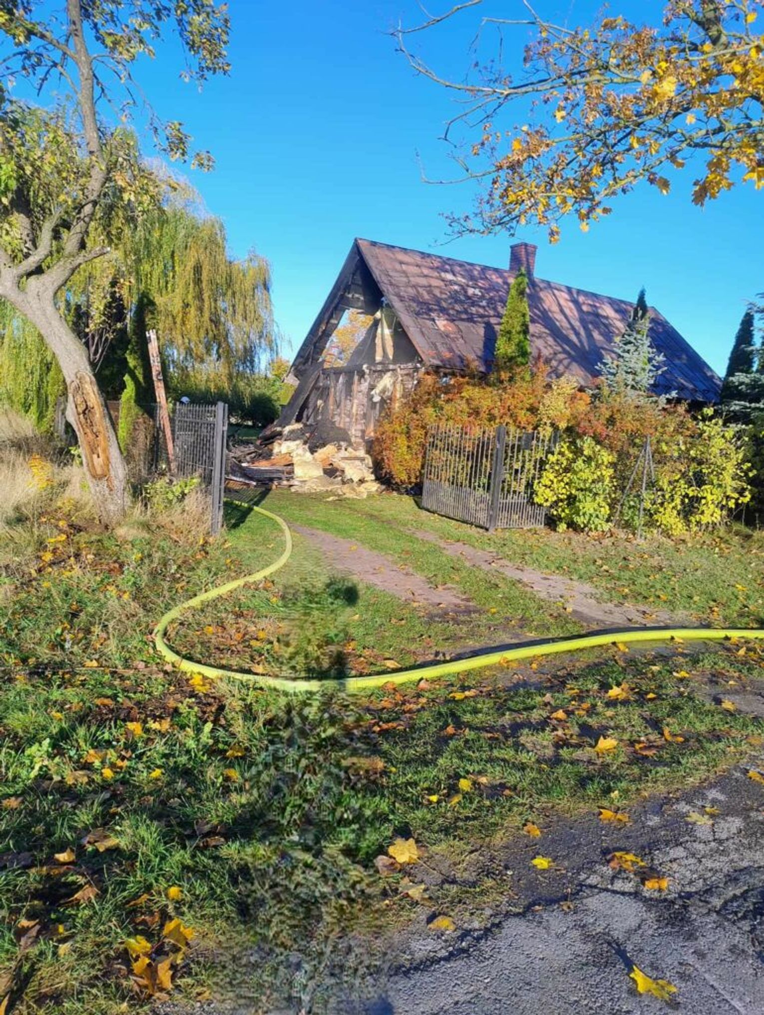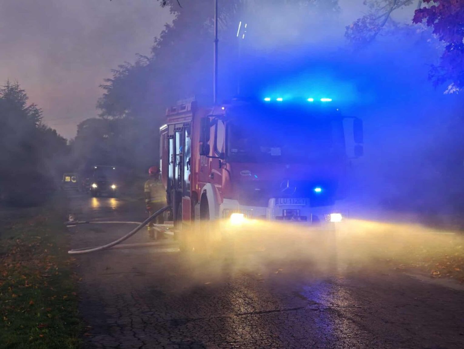 - 10 października o godzinie 5:00 wpłynęło zgłoszenie o pożarze domu jednorodzinnego w miejscowości Gęś. W chwili przyjazdu na miejsce pierwszych zastępów pożarem objęty był cały budynek. Pierwsze działania strażaków polegały na zabezpieczeniu miejsca zdarzenia i podaniu prądów wody na palący się dom, samochód osobowy oraz szpaler z tui - informuje oficer prasowy Komedy Powiatowej PSP w Parczewie, mł. bryg. inż. Krzysztof Fila.