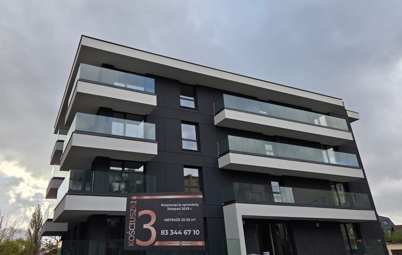 „Kościuszki 3" to projekt, który łączy nowoczesną architekturę z funkcjonalnością. Budynek charakteryzuje się estetycznym wyglądem i wykorzystaniem trwałych materiałów. Apartamenty oferują przemyślane układy, są dobrze doświetlone i zapewniają wygodną przestrzeń do życia.