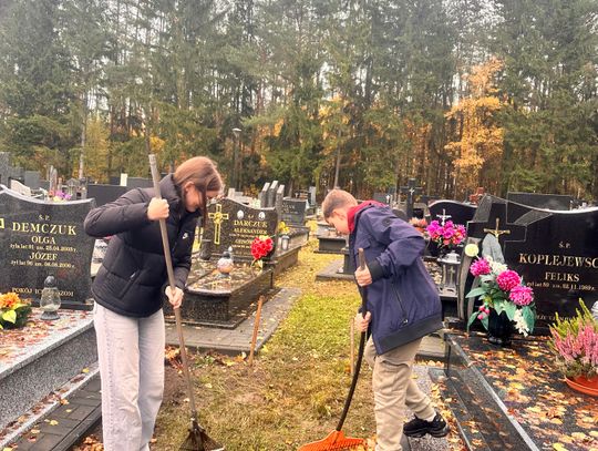 - Działania te miały na celu nie tylko uporządkowanie grobów, ale także były wyrazem szacunku i pamięci o tych, którzy odeszli. Uczniowie z zaangażowaniem i troską sprzątali zaniedbane zakątki cmentarza, usuwając liście i śmieci oraz dbając o estetykę tego miejsca. W ramach akcji uczniowie zapalili symboliczne „światełka pamięci" na grobach zmarłych nauczycieli, pracowników szkoły, znanych osób z naszego środowiska lokalnego oraz na grobach opuszczonych, które potrzebują naszej troski i pamięci - opowiadają nauczyciele.